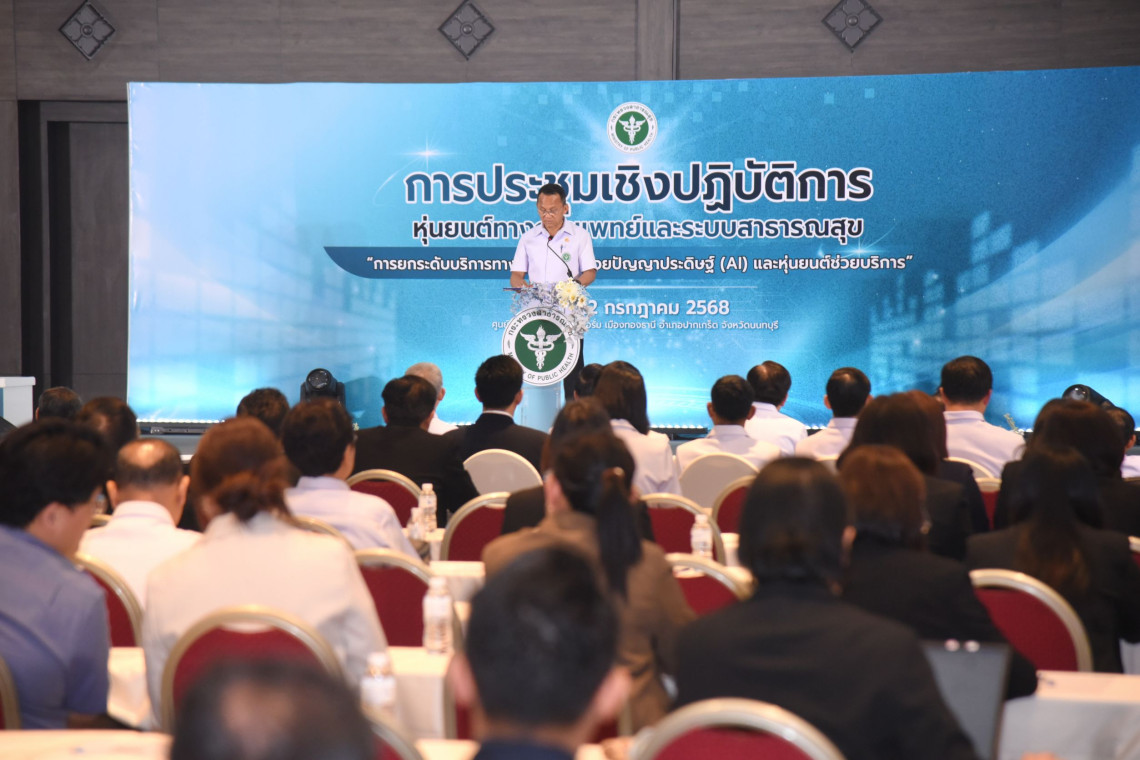 วันที่ 22 ก.ค.2568 ที่อิมแพคเมืองทองธานี นายสมศักดิ์ เทพสุทิน รัฐมนตรีว่าการกระทรวงสาธารณสุข เป็นประธานเปิดการประชุมและปาฐกถาพิเศษในการประชุมเชิงปฏิบัติการหุ่นยนต์ทางการแพทย์และระบบสาธารณสุข ปีงบประมาณ พ.ศ. 2568 โดยมีนพ.โอภาส การย์กวินพงศ์ ปลัดกระทรวงสาธารณสุข ผู้บริหารกระทรวงสาธารณสุข และหน่วยงานที่เกี่ยวข้อง วิทยากรผู้ทรงคุณวุฒิ เข้าร่วมงาน