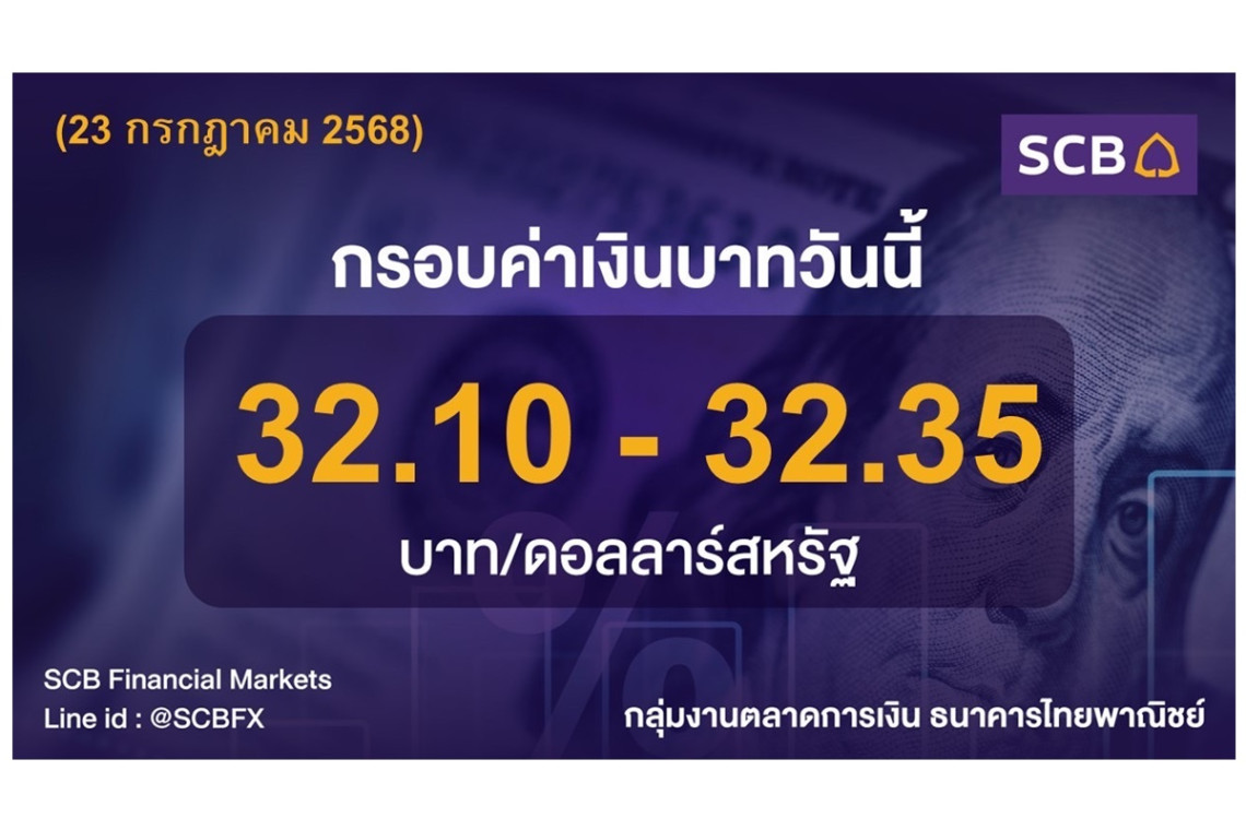 -กลุ่มงานตลาดการเงิน ธนาคารไทยพาณิชย์ ประเมินค่าเงินบาทวันนี้เคลื่อนไหวในกรอบ 32.10-32.35 บาท/ดอลลาร์