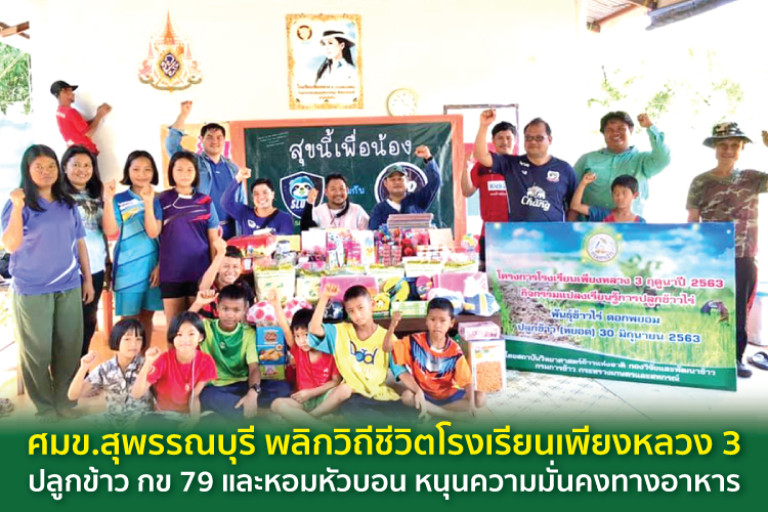 ศูนย์เมล็ดพันธุ์ข้าวสุพรรณบุรี กรมการข้าว ได้ร่วมบูรณาการจัดทำ “โครงการถ่ายทอดความรู้และพัฒนาศักยภาพการผลิตข้าวในพื้นที่โครงการโรงเรียนเพียงหลวง 3” โดยจัดทำแปลงเรียนรู้กระบวนการผลิตเมล็ดพันธุ์ข้าวสำหรับเด็กนักเรียน เกษตรกรในพื้นที่ และจัดทำแปลงปลูกข้าวเพื่อสนับสนุนโครงการอาหารกลางวันแก่เด็กนักเรียน