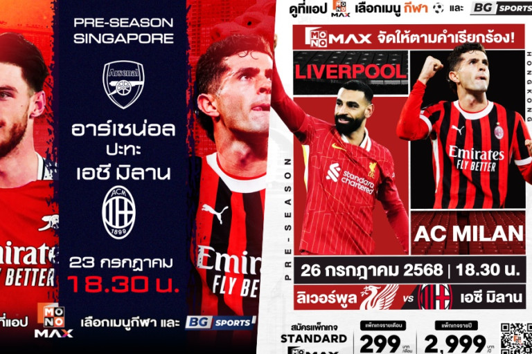 • อาร์เซนอล vs. เอซี มิลาน ในวันที่ 23 กรกฎาคม 2025 เวลา 18:30 น. ทาง Monomax