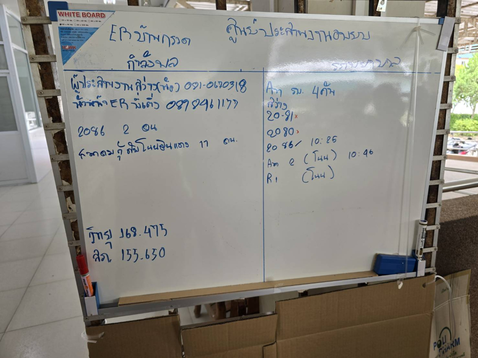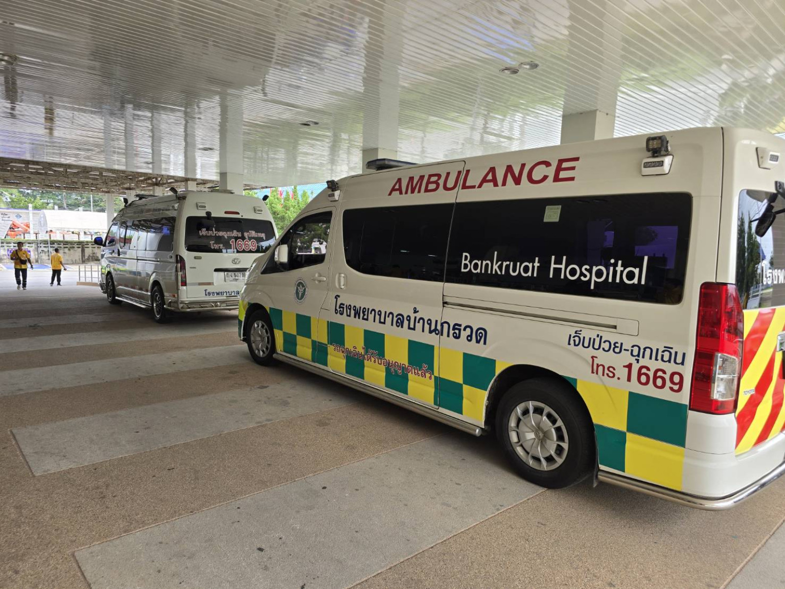 ขณะที่โรงพยาบาลบ้านกรวด เจ้าหน้าที่จากหน่วยกู้ภัยสว่างจรรยาธรรม และเจ้าหน้าที่ของโรงพยาบาล ได้นำรถเตรียมเคลื่อนย้ายผู้ป่วยประมาณ 70 คนที่รักษาตัวอยู่ในโรงพยาบาลไปยังโรงพยาบาลที่ปลอดภัยกว่าเดิมแล้ว