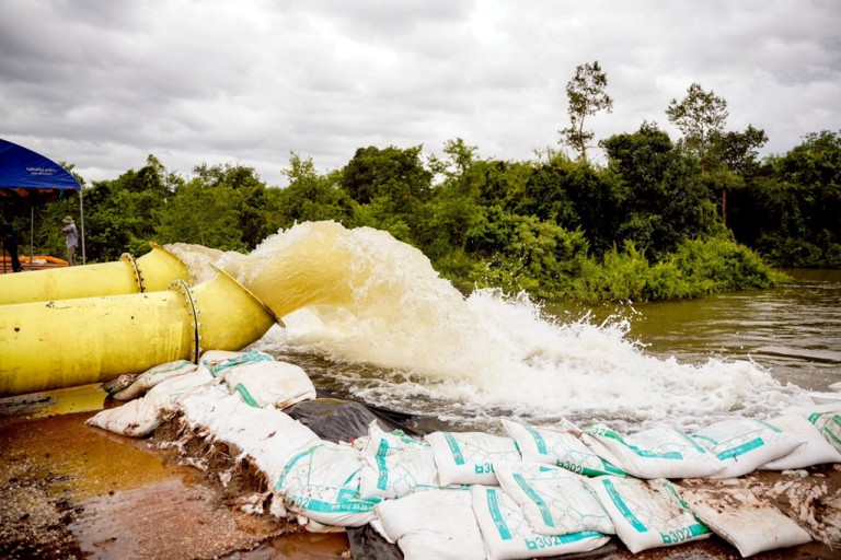 พร้อมกันนี้ ยังได้ติดตั้งเครื่องผลักดันน้ำบริเวณ ปตร.ห้วยบังฮวก อ.ธาตุพนม อีกจำนวน 8 เครื่อง เพื่อเร่งระบายน้ำจากลำน้ำสาขาลงสู่แม่น้ำโขงอย่างต่อเนื่อง ช่วยลดปริมาณน้ำสะสมในพื้นที่ให้ได้มากที่สุด