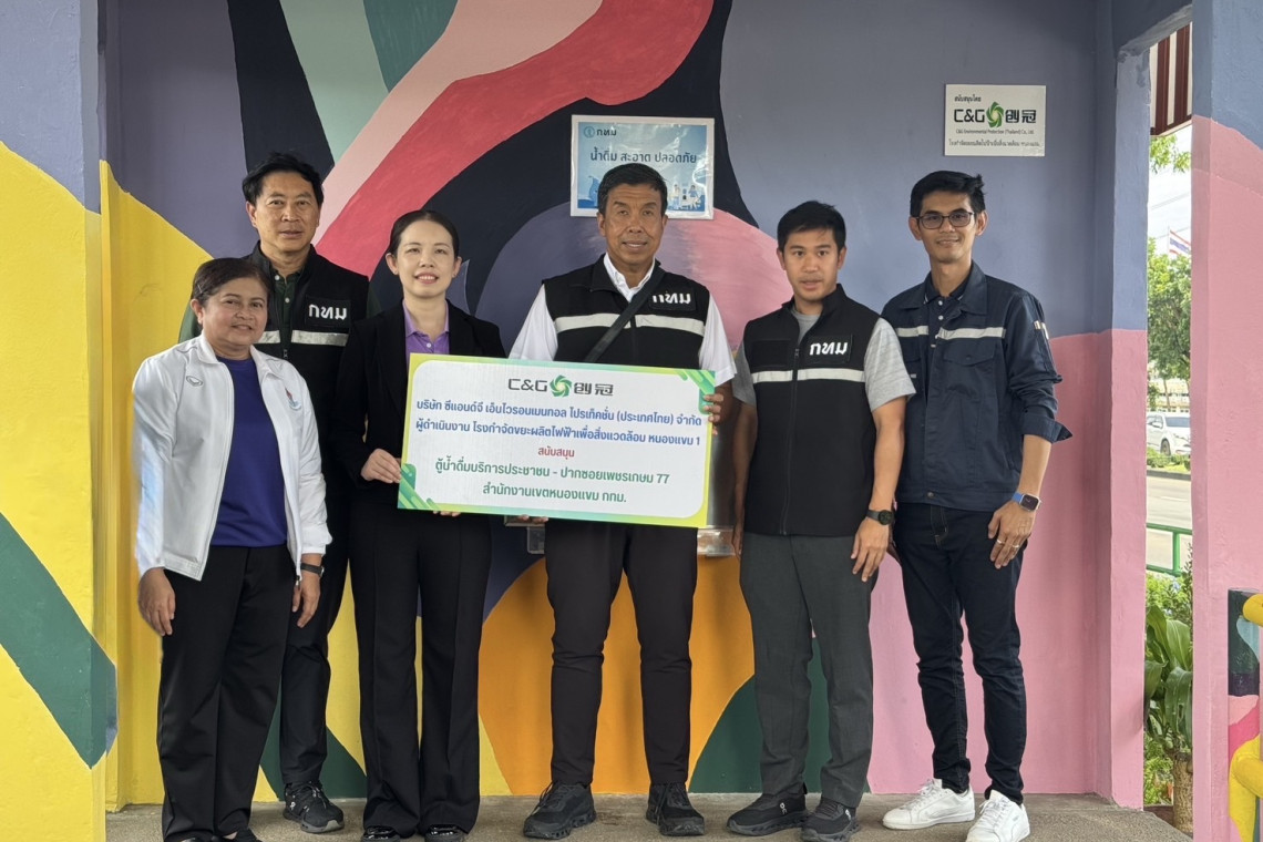 บริษัท ซีแอนด์จี เอ็นไวรอนเมนทอล โปรเท็คชั่น (ประเทศไทย) จำกัด ผู้ดำเนินกิจการโรงกำจัดขยะผลิตไฟฟ้าเพื่อสิ่งแวดล้อม หนองแขม สนับสนุนเงินจำนวน 30,000 บาท ให้กับสำนักงานเขตหนองแขม สำหรับนำไปจัดทำตู้บริการน้ำดื่มให้กับประชาชน ในบริเวณพื้นที่สวน 15 นาที ปากซอยเพชรเกษม 77 เขตหนองแขม ซึ่งทางสำนักงานเขตหนองแขม ต้องการปรับปรุงป้อมตำรวจที่ไม่ได้ใช้งาน และมีสภาพเสื่อมโทรมให้กลับมาใช้ประโยชน์ได้ โดยทำเป็นจุดบริการน้ำดื่มสะอาดให้กับประชาชนที่สัญจรผ่านไปมาได้เข้าถึงบริการด้านสาธารณูปโภค และเป็นการปรับปรุงภูมิทัศน์โดยรอบให้มีความสวยงาม ปลอดภัยอีกด้วย