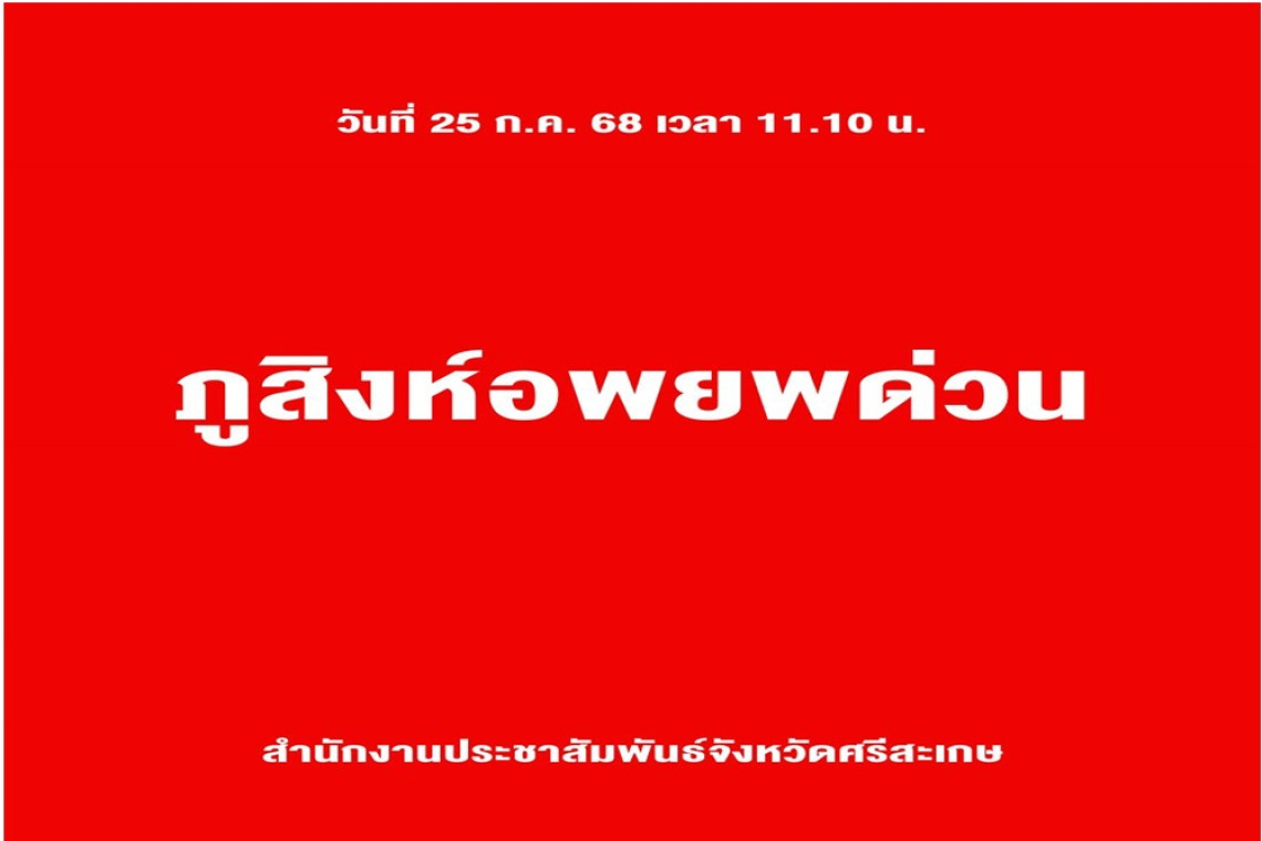วันที่ 25 ก.ค.68 เพจเฟซบุ๊ก สำนักงานประชาสัมพันธ์จังหวัดศรีสะเกษ โพสต์ข้อความระบุว่า...