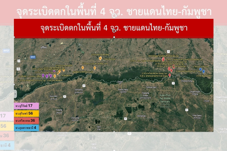 เวลาประมาณ 09.41 น. เกิดการปะทะทุกพื้นที่ จ.สุรินทร์ จ.อุบลราชธานี จ.ศรีสะเกษ