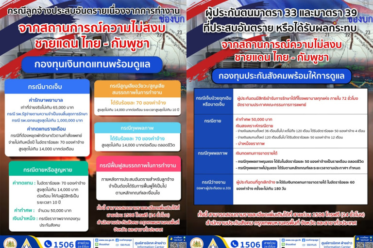 ประกันสังคมเร่งช่วยผู้ประสบเหตุชายแดนไทยกัมพูชา พร้อมเยียวยาเต็มที่ เช็คสิทธิที่นี่
