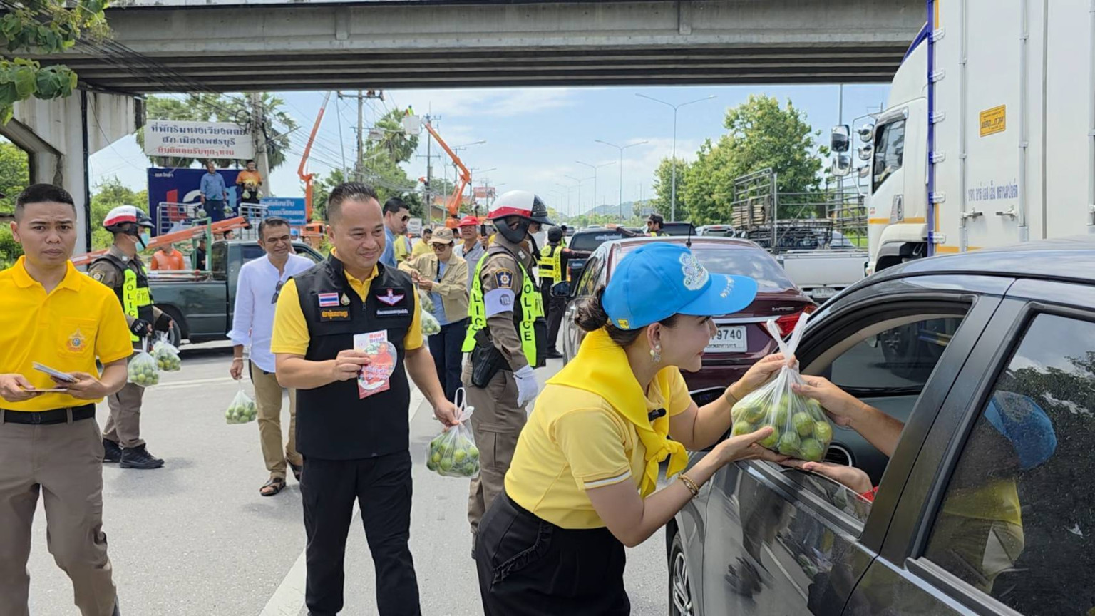 มะนาวล้นตลาด ราคาต่ำ 2 ส.ส.เพชรบุรี ผุดไอเดียนำมะนาวแป้นรำไพ 1แสนลูก แจกฟรีผู้ใช้รถใช้ถนน ที่โค้งอันตรายอันดับ 7 ของประเทศ ชูรสเปรี้ยวทำตาสว่างขับขี่ปลอดภัย กระตุ้นตลาด โปรโมทของดีเมืองเพชร
