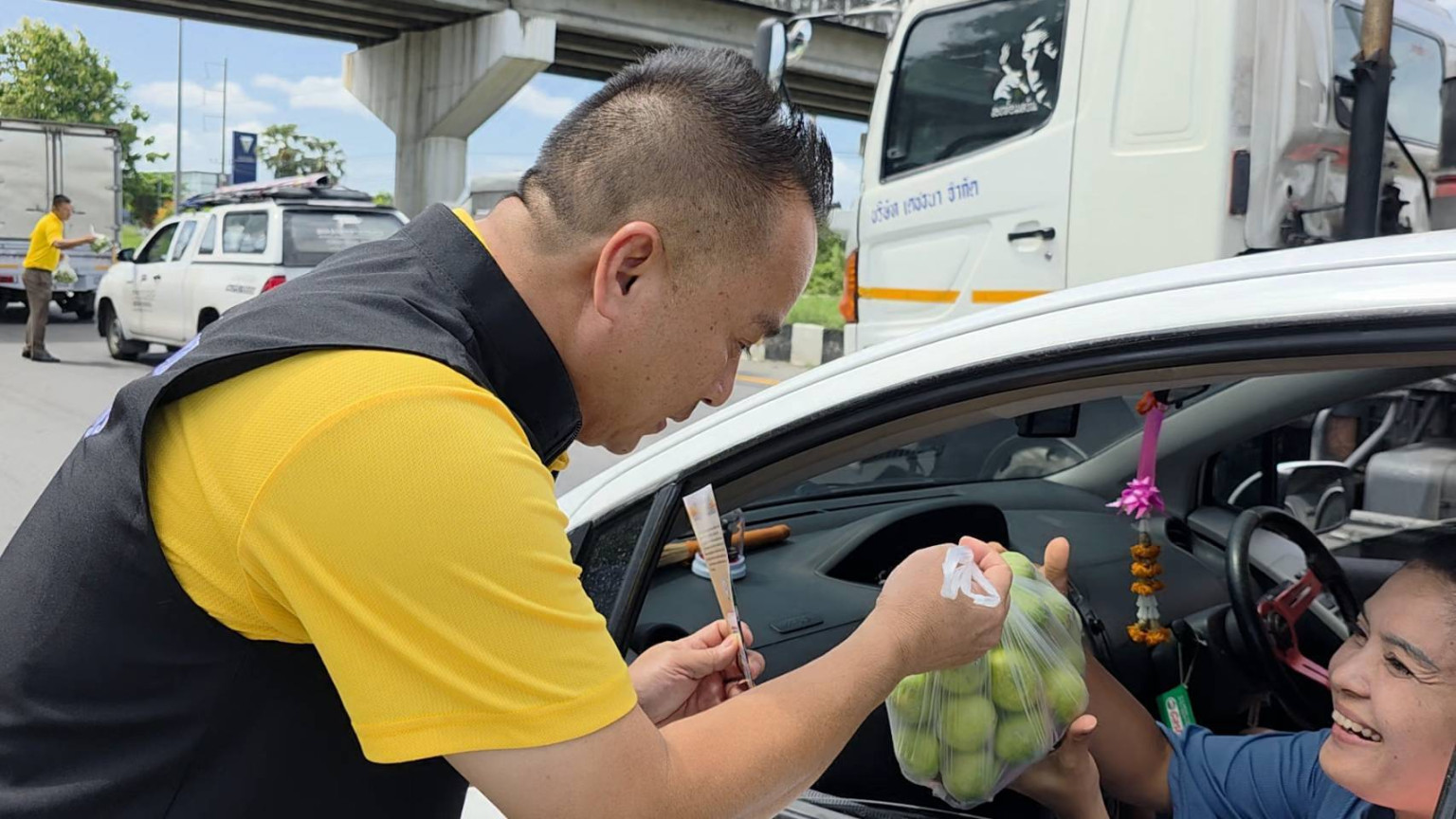 เมื่อเวลา 11.00 น.วันที่ 25 กรกฎาคม 2568 ที่ริมถนนเพชรเกษม(ฝั่งขาล่องใต้) บริเวณด่านตรวจ ต.เวียงคอย อ.เมือง จ.เพชรบุรี นางธิวัลรัตน์ อังกินันทน์ สส.เพชรบุรี เขต 1 และ จ.อ.อภิชาติ แก้วโกศล สส.เพชรบุรี เขต 3 พรรครวมไทยสร้างชาติ เป็นตัวแทนเกษตรกรชาวสวนมะนาว นำผลมะนาวแป้นรำไพจำนวน 100,000 ลูก มาแจกจ่ายฟรีให้แก่ประชาชนผู้ใช้รถใช้ถนน เพื่อประชาสัมพันธ์มะนาวของเพชรบุรีให้เป็นที่รู้จักอย่างแพร่หลายมากยิ่งขึ้น ตลอดจนให้ผู้ขับขี่ได้ลิ้มลองรสชาติความเปรี้ยว ให้หูตาสว่างขณะขับขี่เพื่อลดอุบัติเหตุทางท้องถนน โดยมีเจ้าหน้าที่ตำรวจจราจร สภ.เมืองเพชรบุรี เจ้าหน้าที่ตำรวจทางหลวงเพชรบุรี จ้าหน้าที่ขนส่งจังหวัดเพชรบุรี และ เครือข่ายมูลนิธิเมาไม่ขับ ร่วมแจกจ่ายมะนาว และรณรงค์ให้ขับขี่ปลอดภัย