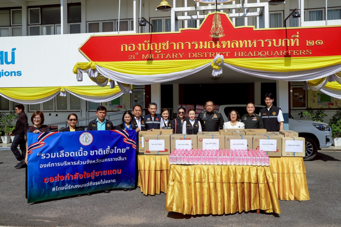 เมื่อวันที่ 25 กรกฎาคม ที่กองบัญชาการมณฑลทหารบกที่ (มทบ.) 21 ค่ายสุรนารี อ.เมือง นครราชสีมา นางยลดา หวังศุภกิจโกศล นายก อบจ.นครราชสีมา มอบสิ่งของและน้ำดื่ม เพื่อส่งต่อความห่วงใยและส่งกำลังใจให้พี่น้องทหารกล้าผู้เสียสละปฏิบัติหน้าที่รักษาอธิปไตย ปกป้องชายแดนไทย รวมทั้งขอแสดงความห่วงใยไปถึงพี่น้องประชาชนที่อาศัยอยู่ตามแนวชายแดนไทย – กัมพูชา
