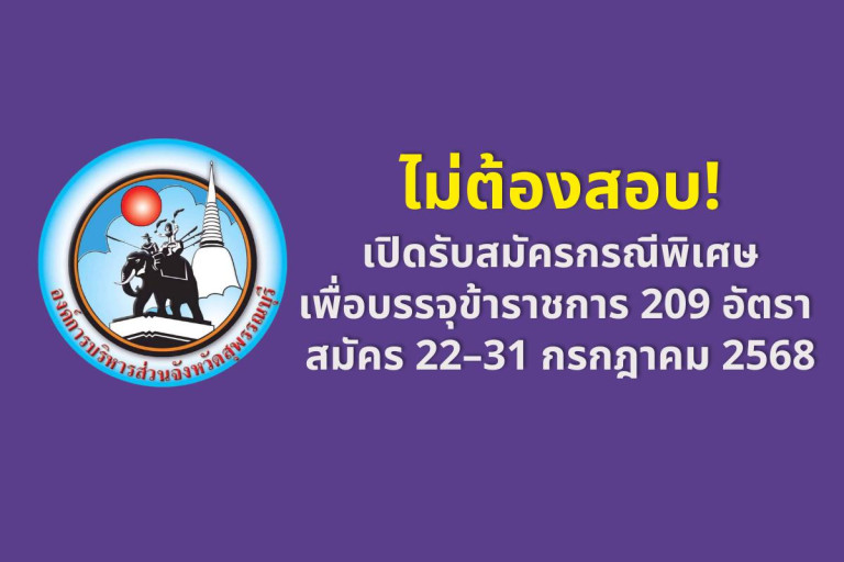 องค์การบริหารส่วนจังหวัดสุพรรณบุรี ประกาศรับสมัครคัดเลือกกรณีพิเศษ โดยไม่ต้องสอบแข่งขัน เพื่อบรรจุและแต่งตั้งบุคคลเข้ารับราชการเป็นข้าราชการองค์การบริหารส่วนจังหวัด จำนวน 209 อัตรา ครอบคลุมตำแหน่งสายสุขภาพ 6 ตำแหน่ง ดังนี้