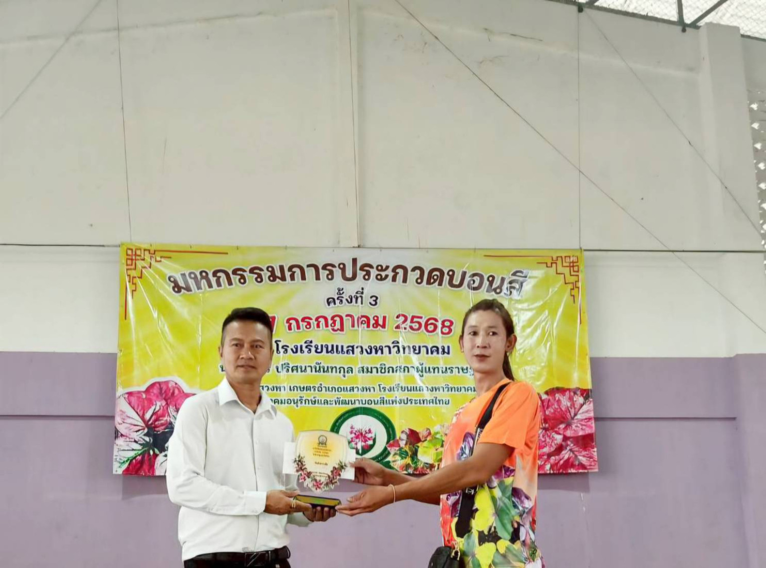 วันที่ 27 กรกฎาคม 2568 นายนรินทร์ อร่ามโชติ นายอําเภอแสวงหา เป็นประธานมอบรางวัลการประกวดบอนสี และเปิดงานจังหวัดอ่างทอง ครั้งที่ 1 มี พระมหาไพรวัลย์ โชติปัญโญ เจ้าอาวาสวัดพวงทอง นายกชเดชา กลุ่มไหม นายกเทศมนตรีตำบลเพชรเมืองทอง สมบัติ อรจันทร์ พร้อมด้วยพี่น้องประชาชน สมาคมอนุรักษ์และพัฒนาบอนสีแห่งประเทศไทยหัวหน้าส่วนราชการ ผู้บริหารองค์กรปกครองส่วนท้องถิ่น กํานัน ผู้ใหญ่บ้านผู้นําชุมชน เข้าร่วมกิจกรรม ณ โรงเรียนแสวงหาวิทยาคม ตําบลแสวงหาอำเภอแสวงหา จังหวัดอ่างทอง