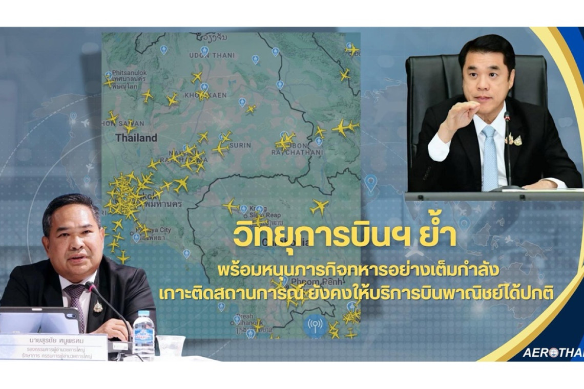 โดยจากการที่ ประเทศกัมพูชา ได้ออกประกาศเขตห้วงอากาศ ที่ติดกับชายแดนไทย เป็นเขตพื้นที่อันตราย ห้ามบินผ่าน วิทยุการบินฯ ได้เปลี่ยนไปใช้เส้นทางบินอื่น เพื่อหลีกเลี่ยงพื้นที่ดังกล่าวแทน เนื่องจากได้เตรียมมาตรการรองรับสถานการณ์ดังกล่าวไว้แล้ว จึงไม่มีผลกระทบต่อการบินของไทย รวมถึงการบินจากไทยไปยังกัมพูชา โดยเที่ยวบินพาณิชย์ ยังคงให้บริการตามปกติ และยังไม่มีการยกเลิกเที่ยวบิน หรือเปลี่ยนเส้นทางบินเพื่อหลีกเลี่ยงน่านฟ้าประเทศไทยแต่อย่างใด ทั้งนี้ สำหรับเที่ยวบินจากประเทศไทยไปยังกัมพูชา (กรุงเทพ-พนมเปญ) สายการบินมีการประกาศยกเลิกในบางเที่ยวบิน เพื่อควบรวมเที่ยวบินและเปลี่ยนขนาดของเครื่องบินให้ใหญ่ขึ้นในการรับผู้โดยสาร โดยสายการบินไทย ได้ยกเลิกเที่ยวบิน ไป/กลับ เที่ยวบินที่ TG584 /TG585 ระหว่างวันที่ 27 -31 กรกฎาคม 2568 ส่วนเที่ยวบิน TG586/587 และเที่ยวบินของสายการบินอื่น ๆ ยังคงทำการบินตามปกติ