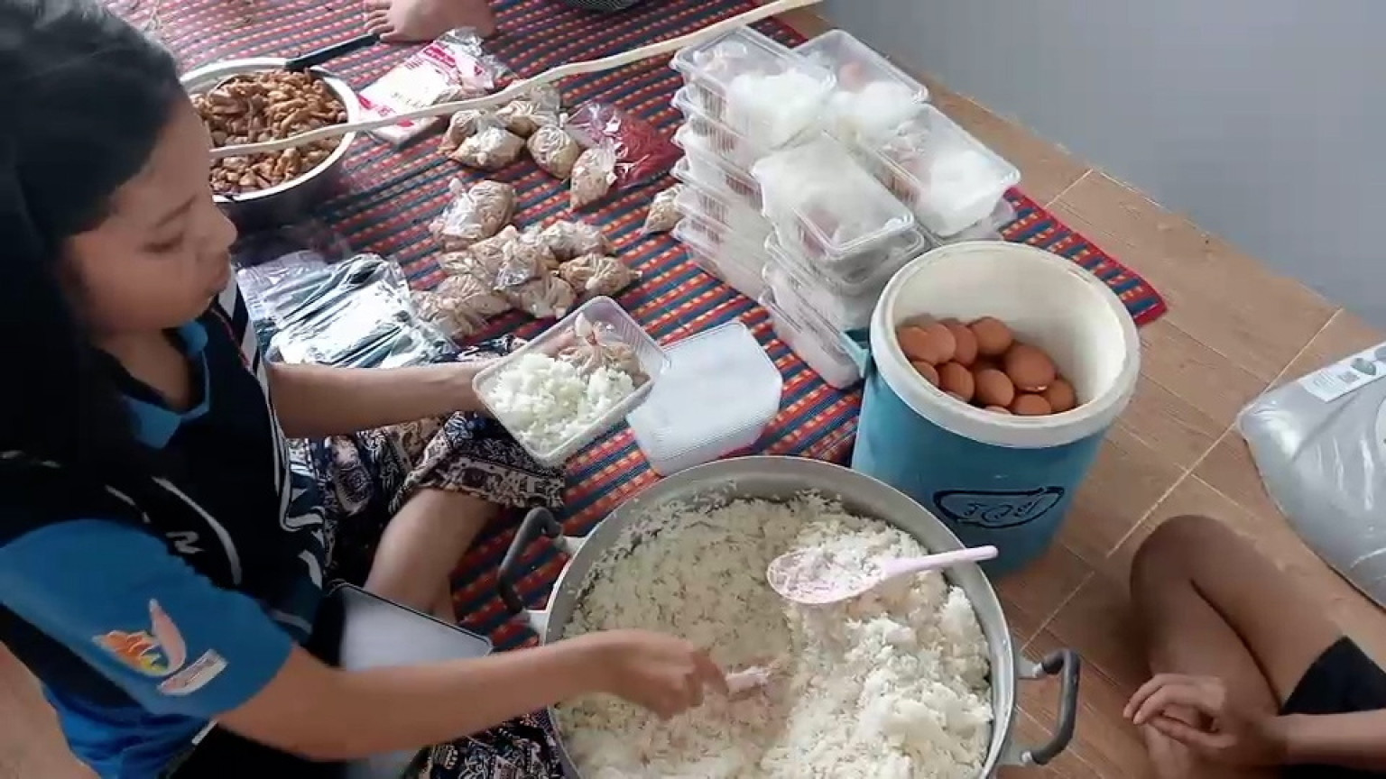 ซึ่ง น.ส.นิชา ใจกล้า และเพื่อนๆร่วมกับอู่ช่างเคาะสุรินทร์และเด็กๆเยาวชนที่รวมกลุ่มทำข้าวกล่อง ที่บ้านเลขที่ 234 หมู่ 8บ้านโคกกระเพอ ต.นอกเมือง จ.สุรินทร์ หลังศูนย์ราชการสุรินทร์ เพื่อนำข้าวกล่อง จำนวน 200 กล่อง พร้อมข้าวสารอาหารแห้งยากันยุง ปลากระป๋องและน้ำดื่มอีก 57 แพ็ค ไปแจกช่วยเหลือให้กับผู้ประสบภัยสงคราม ที่ศูนย์พักพิงทหาวิทยาลัยมหาจุฬาลงกรณ์ราชวิทยาลัย วิทยาเขตสุรินทร์