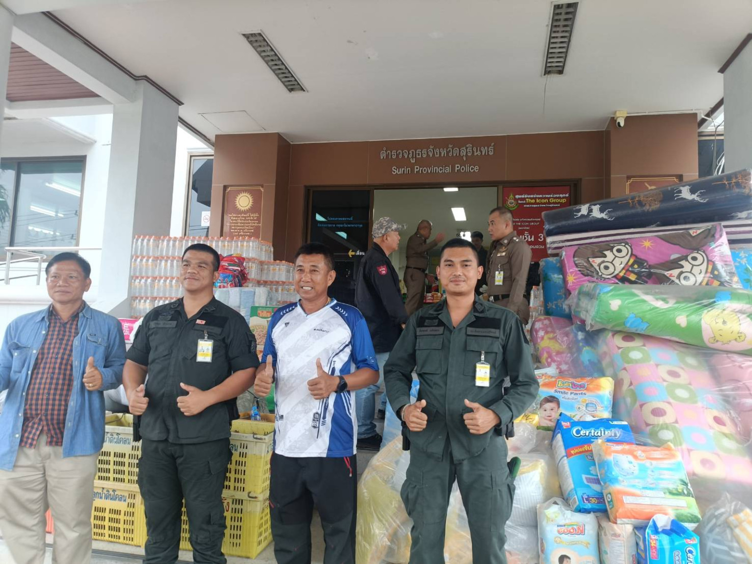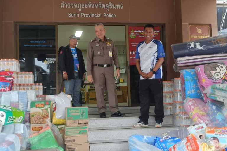 วันที่ 27 ก.ค. 68 ที่ จ.สุรินทร์ จากสถานการณ์ตึงเครียดแนวชายแดนระหว่างไทย-กับกัมพูชา นายสำพราน หมั่นมาก หรือ "เสี่ยหนุ่มพยอม"ประธานตลาดมันมาก และตลาดทรัพย์พยอม พร้อมคณะนำเครื่องอุปโภค-บริโภค มาม่า น้ำดื่ม ที่นอน ผ้าอ้อม แพมเพิสผู้ใหญ่ แพมเพิสเด็ก ยาทากันยุง และยากันยุง มุ้ง ผ้าห่มหมอน มาม่า ปลากระป๋อง ยารักษาโรคมอบให้กับ พล.ต.ต. สุคนธ์. ศรีอรุณ. ผู้บังคับการตำรวจภูธรจังหวัดสุรินทร์. และเจ้าที่ทหารตำรวจ ตามแนวชายแดน ในพื้นที่จังหวัดศรีสะเกษ และจังหวัดสุรินทร์ ศูนย์พักพิง และวัดป่าซ่ำคารม