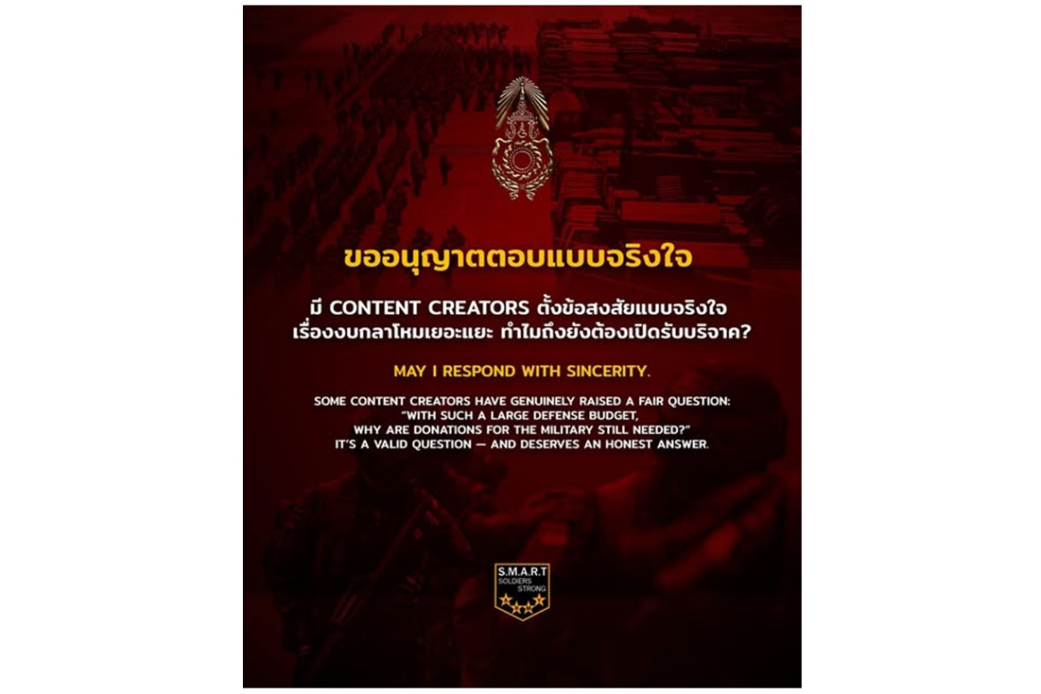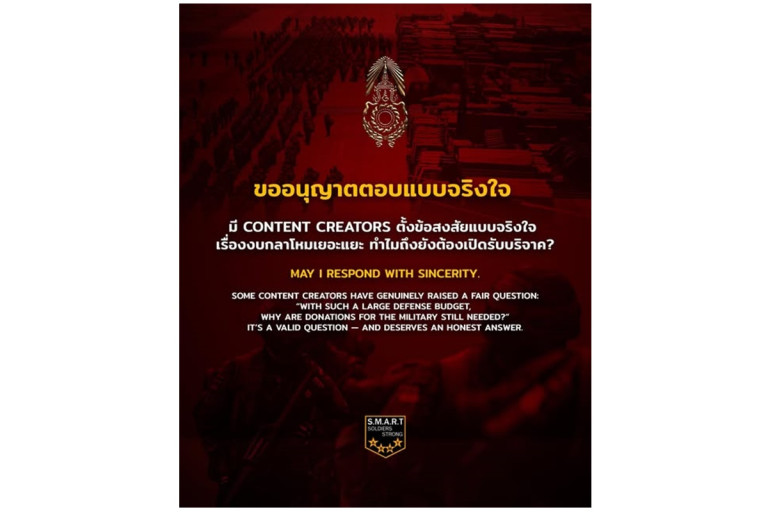 มี content creator ตั้งข้อสงสัยแบบจริงใจ เรื่องงบกลาโหมเยอะแยะ ทำไมถึงยังต้องเปิดรับบริจาค?