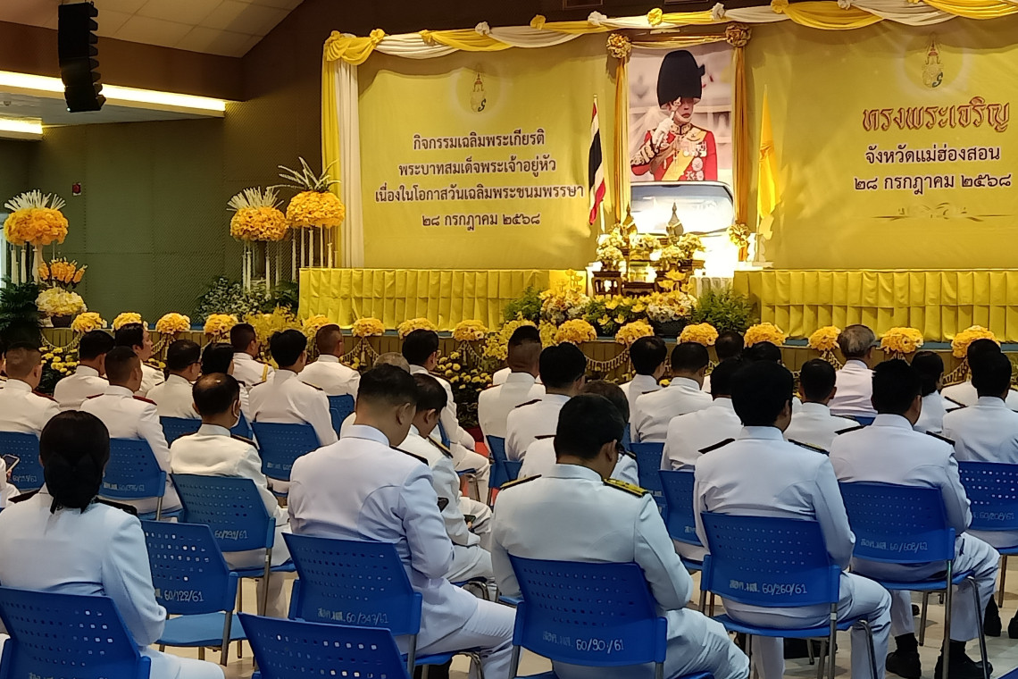 โดยมีพระสุมณฑ์ศาสนกิตติ์ เจ้าคณะจังหวัดแม่ฮ่องสอน นำพระภิกษุสงฆ์สามเณรจากวัดต่าง ๆ ในเขตเทศบาลเมืองแม่ฮ่องสอน จำนวน 74 รูป มารับบิณฑบาตร เพื่อถวายเป็นพระราชกุศลแด่พระบาทสมเด็จพระเจ้าอยู่หัว ฯ เนื่องในโอกาสมหามงคลเฉลิมพระชนมพรรษา 6 รอบ 73 พรรษา 28 กรกฎาคม 2568