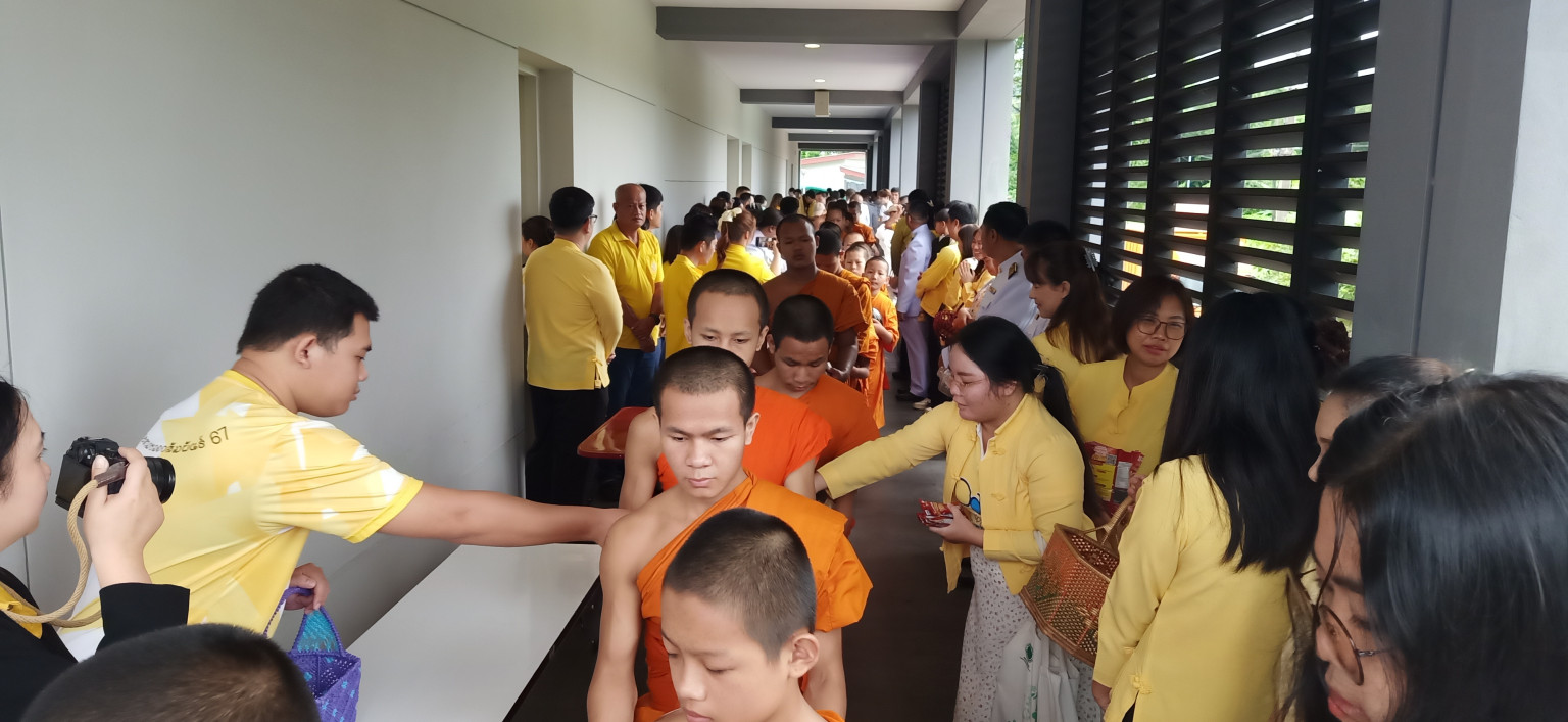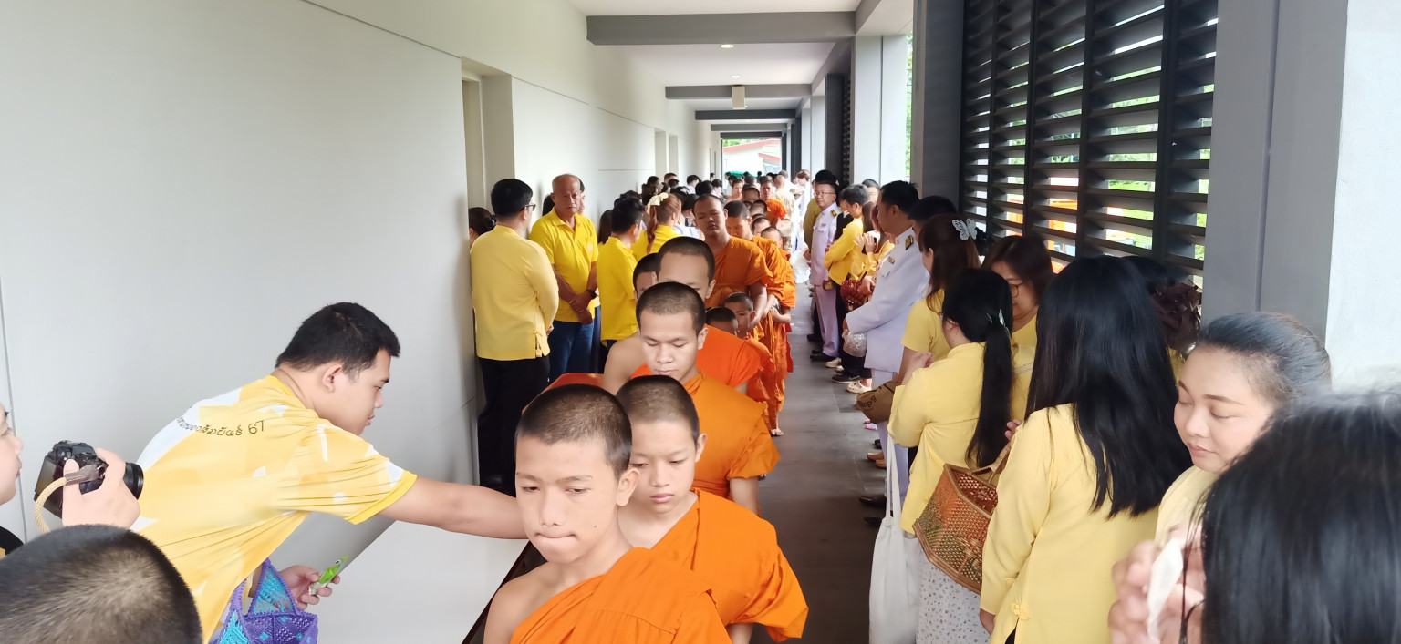 วันที่ 28 กรกฎาคม 2568 ผู้สื่อข่าวรายงาน ว่า ที่หอประชุมสหกรณ์ออมทรัพย์ครูแม่ฮ่องสอน อ.เมืองแม่ฮ่องสอน นายเอกวิทย์ มีเพียร ผู้ว่าราชการจังหวัดแม่ฮ่องสอน พร้อมด้วย รองผู้ว่าราชการจังหวัด ข้าราชการ ทหาร ตำรวจ ฝ่ายปกครอง ภาครัฐ ภาคเอกชน องค์กรปกครองส่วนท้องถิ่น พ่อค้า ตลอดจนพี่น้องประชาชนชาวจังหวัดแม่ฮ่องสอน ทุกหมู่เหล่าจำนวนหลายร้อยคน แต่งเครื่องแบบชุดขาวและประชาชนสวมใส่เสื้อโทนสีเหลือง ได้ร่วมกันทำบุญตักบาตรข้าวสาร อาหารแห้งพระภิกษุสงฆ์- สามเณร จำนวน 74 รูป