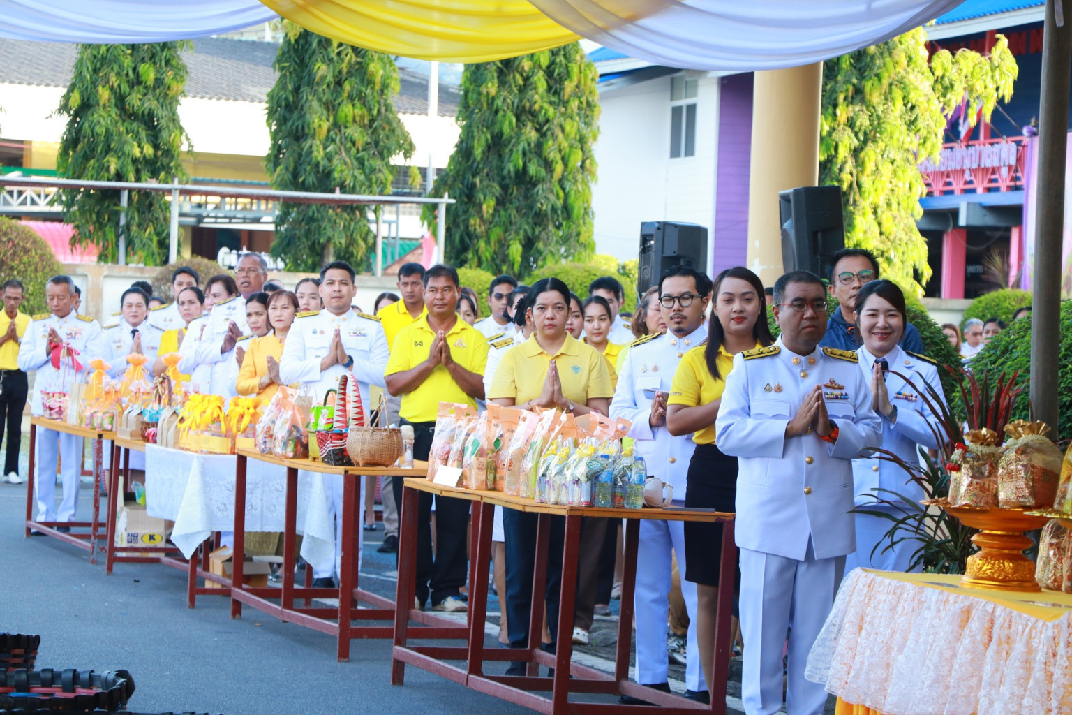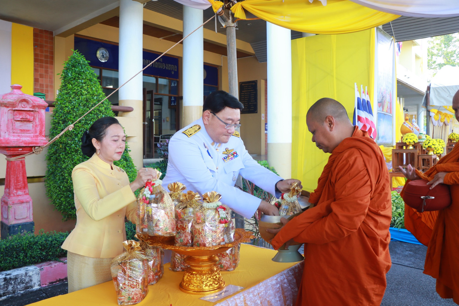 ซึ่งภายหลังพิธีเจริญพระพุทธมนต์เสร็จสิ้น ผู้ว่าราชการจังหวัดและผู้ร่วมพิธีได้ร่วมกันทำบุญตักบาตรพระสงฆ์และสามเณร ซึ่งเดินรับบิณฑบาตอย่างเป็นระเบียบเรียบร้อย สมพระเกียรติแห่งการแสดงความจงรักภักดี และสำนึกในพระมหากรุณาธิคุณของพระบาทสมเด็จพระเจ้าอยู่หัวอย่างพร้อมเพรียง