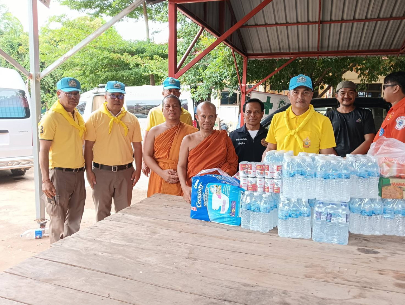 วันที่ 28 กรกฎาคม 68 ที่วัดทุ่งหนองแหวน หมู่ 6 ต.มะค่า อ.โนนไทย พ.ต.อ.ภัทราวุธ สีหะ ผกก.สภ.โนนไทย จ.นครราชสีมา พร้อมข้าราชการตำรวจจิตอาสาลงพื้นที่ตรวจเยี่ยมนำสิ่งของบรรเทาทุกข์และน้ำดื่มมอบให้กับพี่น้องประชาชนซึ่งเป็นกลุ่มผู้ประสบภัยจากปัญหาความไม่สงบตามแนวชายแดนไทย-กัมพูชา ได้อพยพเข้ามาหลบภัยตามบ้านญาติและในวัดหลายแห่งในเขต อ.โนนไทย โดยมีฝ่ายปกครองและเจ้าหน้าที่ตำรวจ สภ.โนนไทยรวมทั้งอาสาสมัครป้องกันภัยพลเรือน (อปพร.) สนธิกำลังกำลังจัดเวรยามออกตรวจตราตามสถานที่พักพิง เพื่อป้องกันเหตุไม่พึงประสงค์