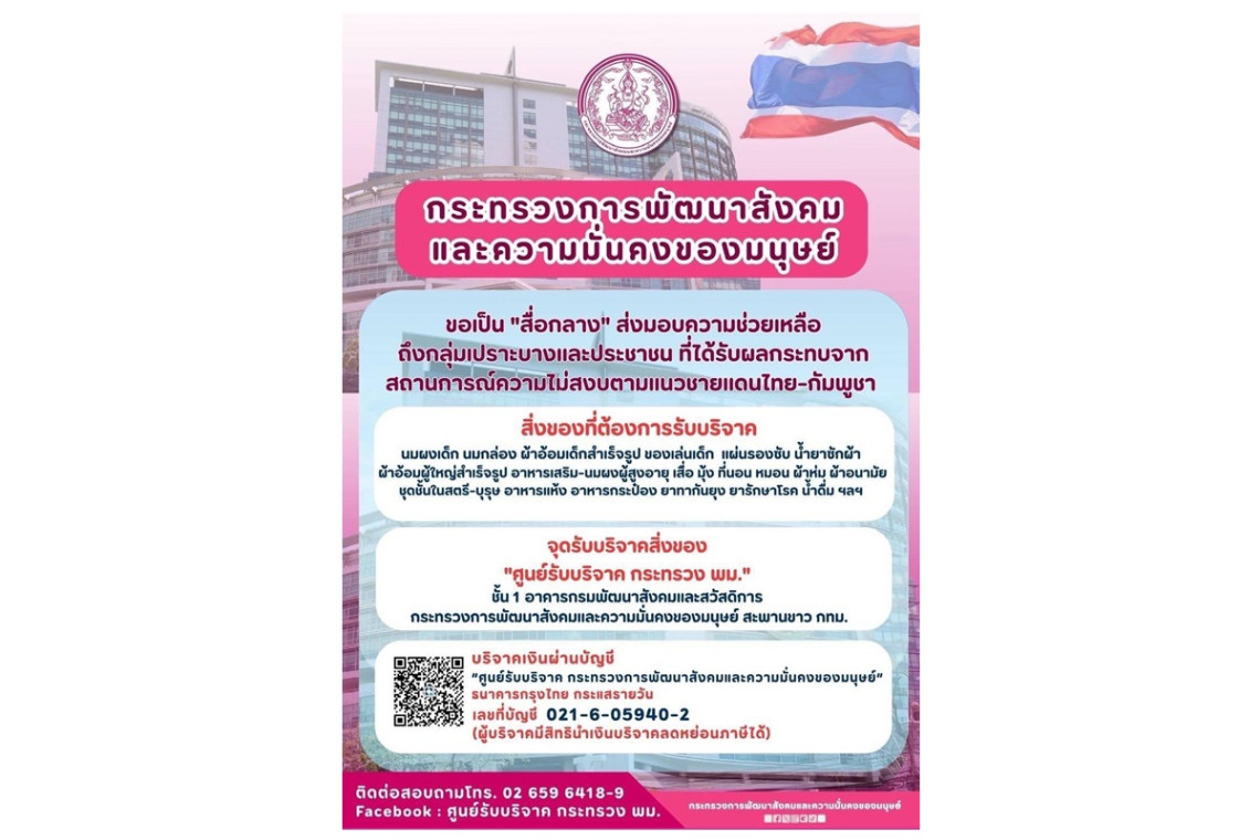 จากสถานการณ์ความไม่สงบตามแนวชายแดนไทย-กัมพูชา ที่เรายังคงต้องติดตามแบบนาทีต่อนาที ทีมงานกระทรวง พม. ได้เร่งลงพื้นที่ดูแลพี่น้องกลุ่มเปราะบางในศูนย์พักพิงแต่ละจังหวัดอย่างเต็มที่ครับ