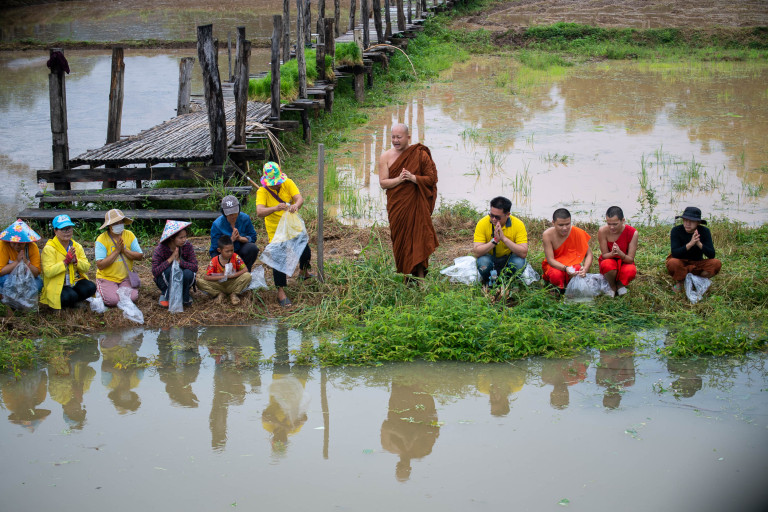เจ้าอธิการจิตตพัฒน์ อคฺคปญฺโญ เจ้าคณะตำบลจองคำ เขต 2 เจ้าอาวาสวัดภูสมณาราม นำพุทธศาสนิกชน จัดกิจกรรม ลงแขก ดำนา ปล่อยปลา เพื่อเฉลิมพระเกียรติฯ 28 กรกฏาคม 2568