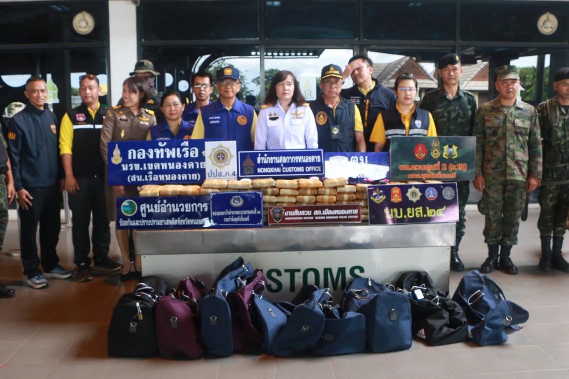สืบเนื่องด้วยวันที่ วันที่ 28 พฤษภาคม 2568 เวลาประมาณ 11.35 น. เจ้าที่หน้าที่หน่วยปฏิบัติการพิเศษเฉพาะกิจเพิ่มประสิทธิภาพการควบคุมทางศุลกากร สำนักงานศุลกากรหนองคาย(หน่วย ฉก.สนค) ร่วมกับเจ้าหน้าที่พาสีประจำด่านพาสีสากลท่าบกท่านาแล้งและขั้วมิตรภาพ 1 เจ้าหน้าที่ด่านตม.สากล ขั้วมิตรภาพ 1 สปป.ลาว,, กองกำลังสรศักดิ์มนตรี,ตม.หนองคาย,ตชด. 245, นบ.ยส.24 ปปส.ภ.4 ,สภ.เมืองหนองคาย และเจ้าหน้าที่ความมั่นคง ร่วมกันตรวจสอบรถบรรทุกทะเบียนลาว บก 2890 กำแพงนะคอน ที่วิ่งเข้ามาจาก สปป.ลาว พบกระเป้าสัมภาระจำนวน10 ใบต้องสงสัยซุกช่อนอยู่บริเวณที่เก็บของบนหลังคารถ จึงได้นำมาตรวจสอบพบภายในกระเป๋ามี ยาบ้าบรรจุอยู่ เจ้าหน้าที่ได้นำมาตรวจนับอย่างละเอียดอีกครั้ง รวมยาบ้าที่ตรวจยึดได้ครั้งนี้ จำนวนประมาณ 996,000 เม็ด จึงนำของกลางส่ง สภ.เมืองหนองคาย ส่วนผู้ต้องหา 2 คนที่หลบหนีไปนั้นเจ้าหน้าที่ทราบชื่อและที่อยู่ ซึ่งจะได้ติดตามตัวเพื่อนำมาดำเนินมา ตามกฎหมายต่อไป