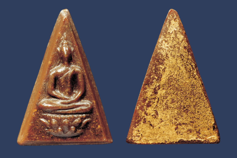 ด้านข้างจะเห็นรอยตัดเป็น 2 สี 2 ชั้นเหมือนกันทุกด้านส่วนด้านหลังโดยส่วนมากจะมีความหนึกนุ่ม มีรอยมวลสารสีแดง-ดำ อยู่เป็นกลุ่ม ส่วนพระที่ทำเลียนแบบจะกระจายอยู่ทั่ว และจะปิดทอง