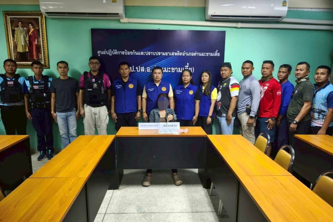 วันที่ 1 สิงหาคม 2568 เวลา 8.30-17.00 น. ภายใต้การอำนวยการของนายอธิสรรค์ อินทร์ตรา ผู้ว่าราชการจังหวัดกาญจนบุรี, นายอนุสรณ์ สง่าแสง นายอำเภอด่านมะขามเตี้ย, พ.ต.อ.อำนาจ เอี่ยมใจดี ผกก.สภ.ด่านมะขามเตี้ย สั่งการให้นายอธิปพัตน์ ธนาไพศาลวรกุล ปลัดอาวุโสอำเภอ, นายธีระ อ่อนเทศ ปลัดอำเภอฝ่ายความมั่นคง นางสาวกุลชาติ มะขามหอม นางสาวสุจิตรา ชะอุ่มและสมาชิกกองอาสารักษาดินแดน ร้อย อส.อ.ด่านมะขามเตี้ย ที่ 12 บูรณาการร่วมกับเจ้าหน้าที่ตำรวจ สภ.ด่านมะขามเตี้ย ดำเนินมาตรการปราบปรามยาเสพติด จับกุมผู้เกี่ยวข้องกับยาเสพติด โดยได้รับข้อมูลจาก Re-Xray ถึงเบาะแสผู้ค้ายาเสพติด จึงได้สืบสวนและวางสายลับทำการล่อซื้อยาเสพติด หลังจากนั้นได้ร่วมกันจับกุมตัว ผู้ต้องหา 3 ราย