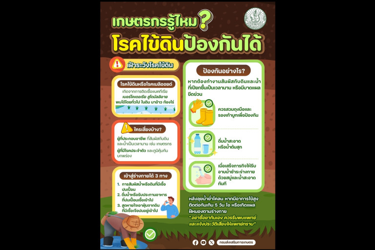 เมื่อวันที่ 2 ส.ค.68 นายอนุกูล พฤกษานุศักดิ์ รองโฆษกประจำสำนักนายกรัฐมนตรี เปิดเผยว่า ช่วงฤดูฝน นอกจากโรคติดเชื้อในระบบทางเดินหายใจแล้ว ประชาชนยังต้องระมัดระวังโรคอื่นด้วย ซึ่งข้อมูลจากกรมควบคุมโรค รายงานว่ามีประชาชนป่วยเป็นโรคเมลิออยโดสิส หรือโรคไข้ดินแล้ว จำนวน 2,036 ราย เสียชีวิต 92 ราย อัตราป่วยตายอยู่ที่ 4.52% โดยผู้ป่วยพบมากในอาชีพเกษตรกร และรับจ้างทั่วไป พบผู้ป่วยได้ทั่วประเทศ แต่จะสูงสุดในภาคตะวันออกเฉียงเหนือ ซึ่งผู้ป่วยส่วนใหญ่เป็นเพศชาย อายุเฉลี่ย 58 ปี ผู้เสียชีวิตจะมีโรคประจำตัว เช่น โรคเบาหวาน ไตวาย และพิษสุราเรื้อรัง ซึ่งผู้ป่วยจะมีอาการไข้สูง หายใจหอบเหนื่อย โดยปัจจัยรับเชื้อเกิดจากการสัมผัสพื้นดิน พื้นน้ำโดยไม่สวมอุปกรณ์ป้องกัน