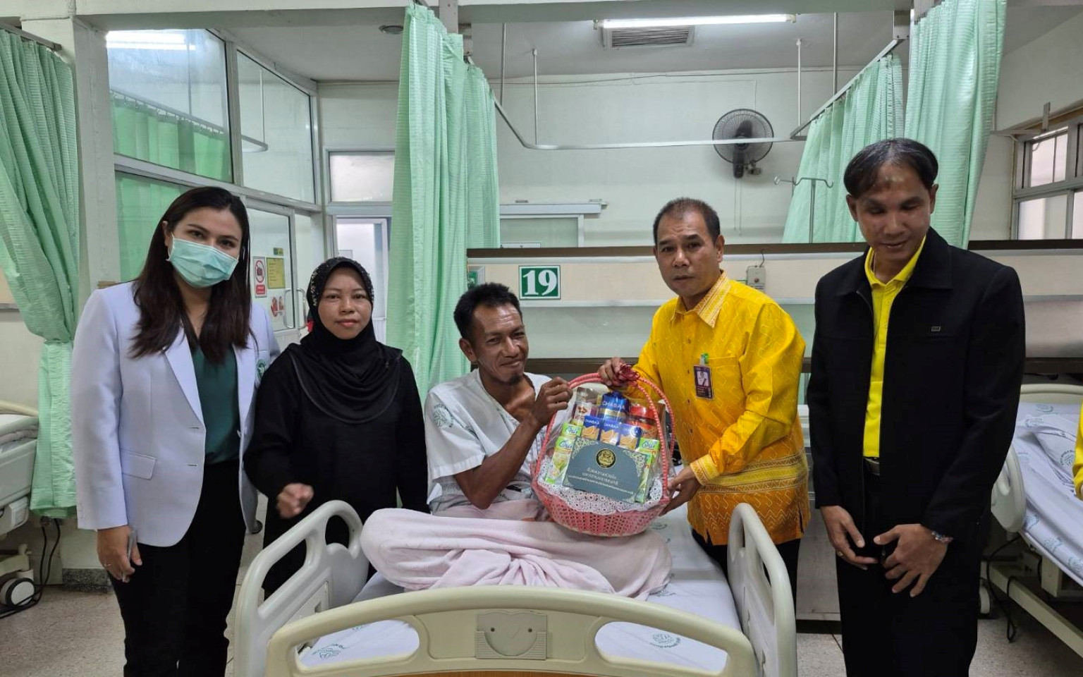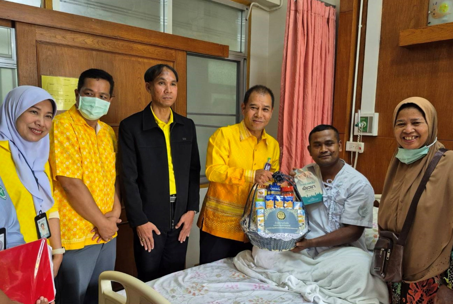 ในการนี้ ผู้ช่วยเลขาธิการ ศอ.บต. ได้พูดคุยให้กำลังใจ พร้อมมอบกระเช้าเยี่ยมในนาม เลขาธิการ ศอ.บต. เพื่อเป็นขวัญกำลังใจแก่ผู้ได้รับบาดเจ็บ สำหรับสิทธิการช่วยเหลือเยียวยาผู้ได้รับผลกระทบฯ ให้เป็นไปตามที่แพทย์ได้ระบุไว้ รวมไปถึงสิทธิอื่นๆตามหลักเกณฑ์ที่ควรได้รับอีกด้วย