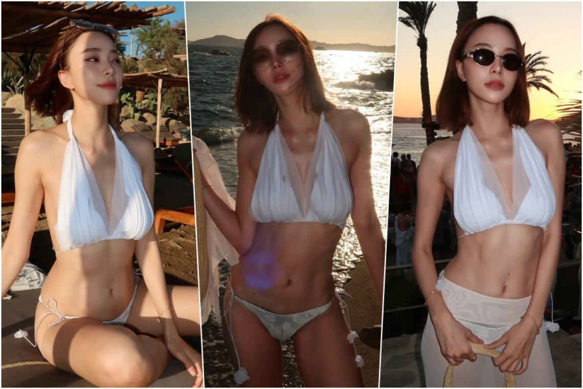 ท่ามกลางแสงอาทิตย์ริมชายหาดอันร้อนแรง “นิวเคลียร์ หรรษา” นักแสดงและอินฟลูเอนเซอร์สาวชื่อดัง ปล่อยช็อตเด็ดอวดหุ่นสุดเป๊ะในบิกินีสีขาวคล้องคอ เผยเอวเอส หน้าท้องแบนราบ และผิวเนียนตัดกับแสงแดดอย่างสวยงาม พร้อมโพสท่ารับกับแสงอาทิตย์ที่กำลังตกกระทบผืนน้ำ คล้ายแสงฮาโล่ที่ส่องขับใบหน้าให้ดูโดดเด่น