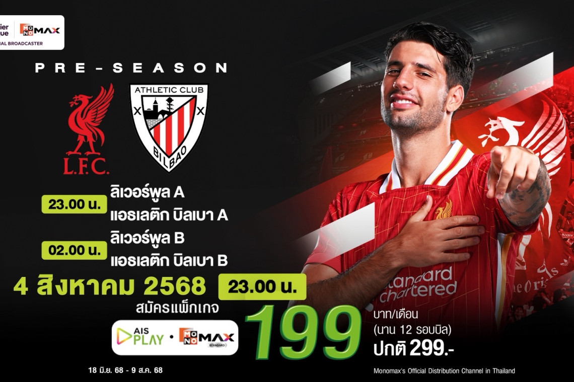 พิเศษ! ลูกค้าเอไอเอส เตรียมดู Pre-Season ก่อนไปดูพรีเมียร์ลีก เพียงสมัครแพ็กเกจ PLAY MONOMAX Standard