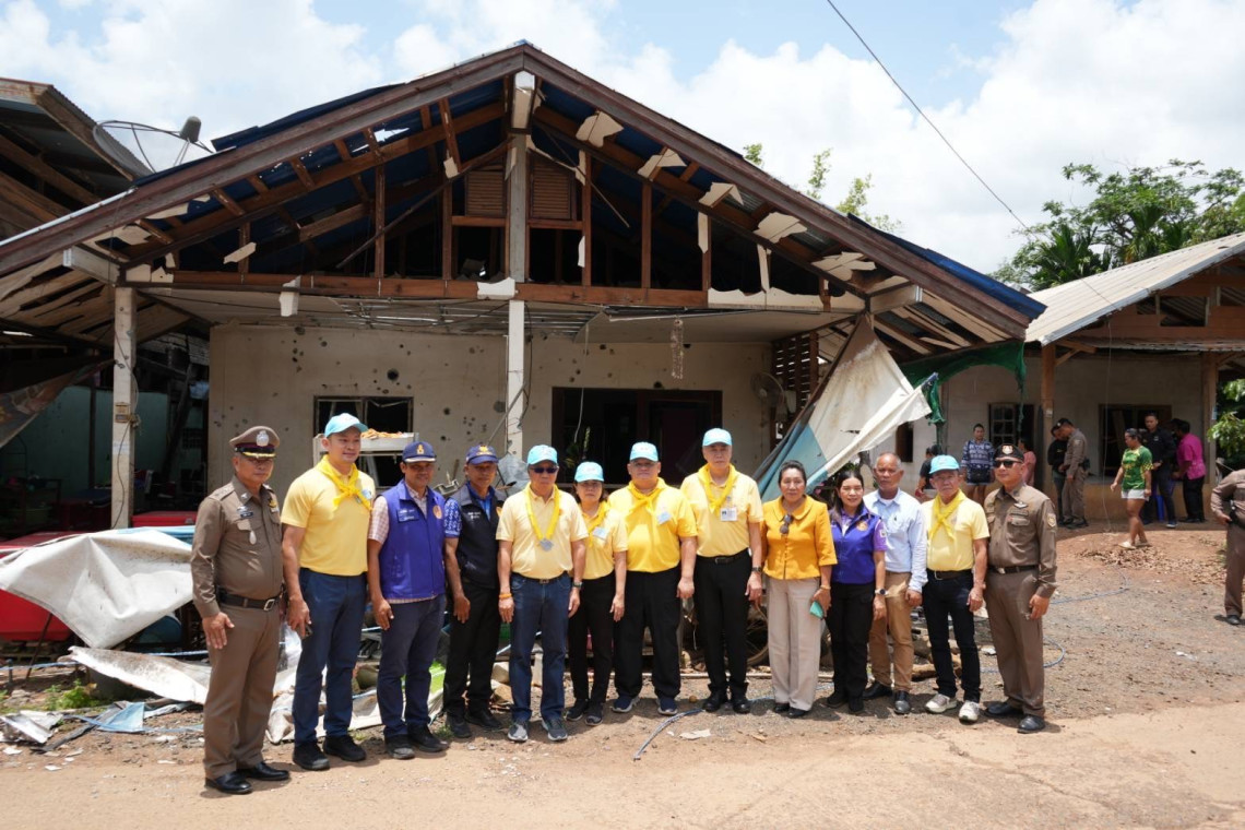 จากนั้นคณะฯ ได้ลงพื้นที่ ตำบลกระสุนตก หมู่ 5 ต.ศรีวิเชียร อ.น้ำยืน ซึ่งเป็นพื้นที่ที่ได้รับความเสียหายโดยตรงจากการปะทะ เพื่อสำรวจความเสียหายและให้กำลังใจประชาชนที่อาศัยอยู่ในพื้นที่ใกล้เคียง