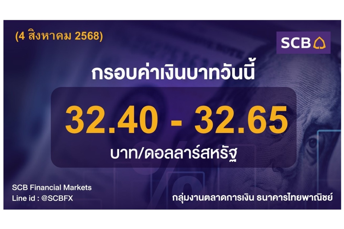 •กลุ่มงานตลาดการเงิน ธนาคารไทยพาณิชย์ ประเมินค่าเงินบาทวันนี้เคลื่อนไหวในกรอบ 32.40-32.65บาท/ดอลลาร์