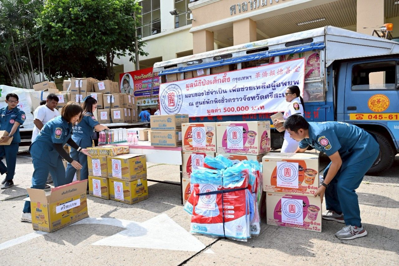 ให้แก่พี่น้องประชาชนผู้อพยพจากสถานการณ์ชายแดนไทย-กัมพูชา รวมมูลค่า 1.5 ล้านบาท โดยมี นายจำเริญ แหวนเพ็ชร รองผู้ว่าราชการจังหวัดบุรีรัมย์ นายสมบูรณ์ สุธีระกูล รองผู้ว่าราชการจังหวัดบุรีรัมย์ เป็นผู้รับมอบ พร้อมด้วย คณะมูลนิธิสว่างจรรยาธรรมสถาน จังหวัดบุรีรัมย์ เป็นผู้ประสานงานและร่วมดำเนินการ ณ ศูนย์พักพิงชั่วคราวในพื้นที่จังหวัดบุรีรัมย์ และ นายวสันต์ ชิงชนะ รองผู้ว่าราชการจังหวัดสุรินทร์ เป็นผู้รับมอบ พร้อมด้วย คณะมูลนิธิสุรินทร์สามัคคีกุศลสถานสงเคราะห์ (จิบเต็กเซี่ยงตึ๊ง) เป็นผู้ประสานงานและร่วมดำเนินการ