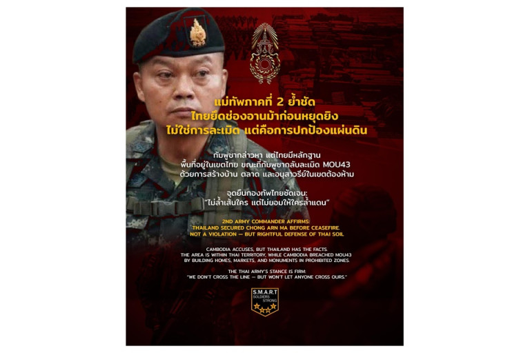 จุดยืนของกองทัพไทยชัดเจน: ปกป้องอธิปไตยโดยไม่ล้ำเส้น