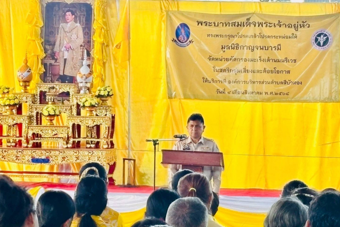 วันที่ 4 สิงหาคม 2568 สำนักงานสาธารณสุขจังหวัดอ่างทอง ร่วมกับมูลนิธิกาญจนบารมี และเครือข่ายบริการสุขภาพอำเภอแสวงหา (คปสอ.แสวงหา) จัดกิจกรรมโครงการคัดกรองมะเร็งเต้านมโดยเครื่องเอกซเรย์เต้านมเคลื่อนที่ (Mammogram) และโครงการคัดกรองมะเร็งนรีเวช สำหรับสตรีกลุ่มเสี่ยงและกลุ่มด้อยโอกาสในพื้นที่จังหวัดอ่างทอง เพื่อเฉลิมพระเกียรติพระบาทสมเด็จพระเจ้าอยู่หัว เนื่องในโอกาสพระราชพิธีมหามงคลเฉลิมพระชนมพรรษา 6 รอบ วันที่ 28 กรกฎาคม 2567 โดยมีนายนรินทร์ อร่ามโชติ นายอำเภอแสวงหา เป็นประธานในพิธีเปิดกิจกรรม ซึ่งได้รับความร่วมมือจากหน่วยงานด้านสาธารณสุขในพื้นที่ และได้รับการสนับสนุนเครื่องตรวจ Mammogram จากมูลนิธิกาญจนบารมี