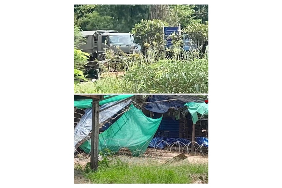 ทหารไทย วางกำลัง พร้อมเครื่องมือกู้กับระเบิด และล้อมลวดหนาม บริเวณตลาด ช่องอานม้า อุบลฯ เมื่อ 11โมง ของวันนี้