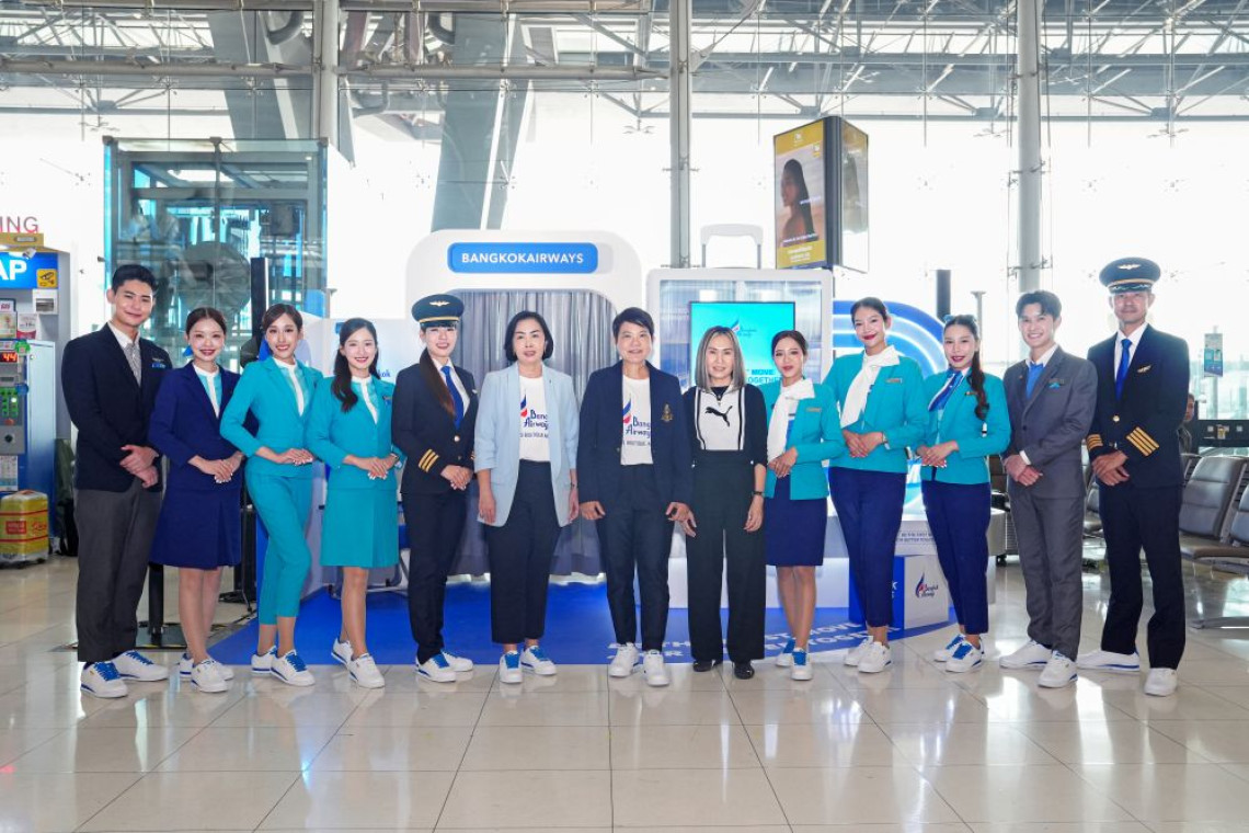 สายการบินบางกอกแอร์เวย์สเปิดตัวรองเท้าผ้าใบสำหรับพนักงานบริการส่วนหน้า (Frontline Staff) คอลเลกชันพิเศษ “Bangkok Airways x PUMA” ภายใต้คอนเซปต์ “BE THE FIRST MOVE FOR BETTER TOGETHER” ตอกย้ำอัตลักษณ์เอเชียบูทีคแอร์ไลน์ สร้างพลังขับเคลื่อนองค์กรสู่ความเป็นเลิศด้านการบริการ ทั้งนี้ ได้รับเกียรติจาก นางสาวอมรรัตน์ คงสวัสดิ์ รองกรรมการผู้อำนวยการใหญ่ฝ่ายขาย และรักษาการรองกรรมการผู้อำนวยการใหญ่ฝ่ายการตลาด บริษัท การบินกรุงเทพ จำกัด (มหาชน) นางจันทร์ทิพย์ ทองกันยา รองกรรมการผู้อำนวยการใหญ่ สำนักกรรมการผู้อำนวยการใหญ่ บริษัท การบินกรุงเทพ จำกัด (มหาชน) และนางสาวพรทิพย์ วนิชนพรัตน์ ผู้จัดการและผู้อำนวยการประจำภูมิภาค บริษัท พูม่าสปอร์ตส (ประเทศไทย) จำกัด เข้าร่วมงาน ณ ท่าอากาศยานสุวรรณภูมิ