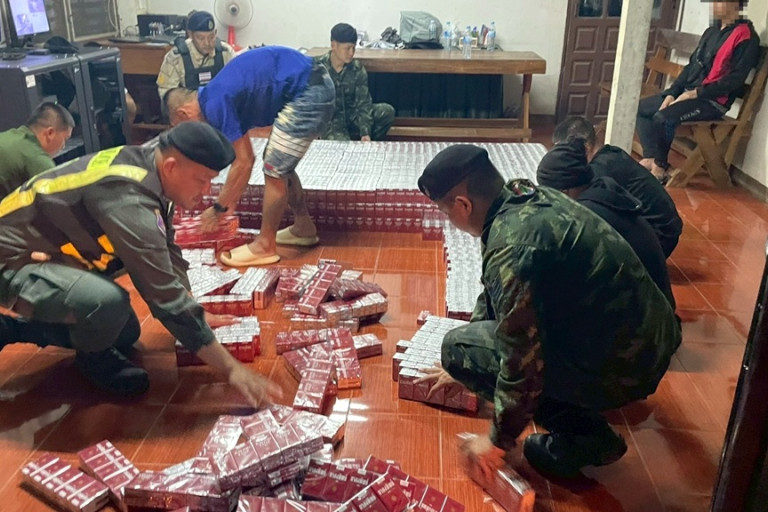 รวบบุหรี่เถื่อนคาด่านน้ำเกริ๊ก มูลค่า 9.27 ล้านบาท!!.. ทหาร ฉก.ลาดหญ้า กกล.สุรสีห์ สกัดจับหนุ่มขนบุหรี่เถื่อนแน่นท้ายกระบะ มูลค่าเปรียบเทียบปรับเกือบ 10 ล้านบาท