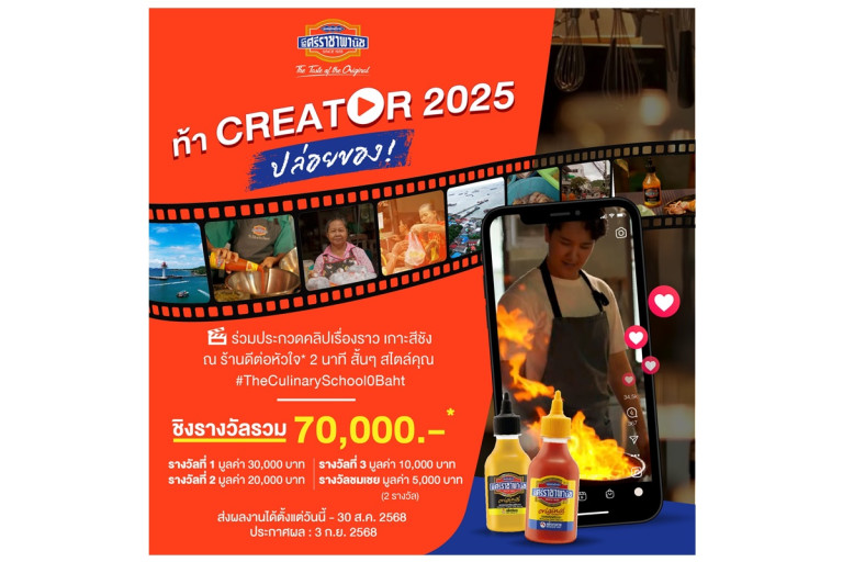 แบรนด์ “ซอสพริกศรีราชาพานิช” ต้นตำรับซอสพริกศรีราชารายแรกที่มีอายุยาวนานกว่า 90 ปี และ ร้านอาหาร “ดีต่อหัวใจ” ร้านโลคอลบนเกาะสีชัง ขอเชิญชวนเหล่าครีเอเตอร์ทั่วประเทศที่มีอายุตั้งแต่ 18 ปีขึ้นไป ประชันความสามารถพร้อมออกเดินทางชาร์จพลังใจ ณ เกาะสีชัง เกาะกลางทะเลที่เปี่ยมด้วยธรรมชาติ เสน่ห์วิถีชีวิตผู้คน วัฒนธรรมท้องถิ่นเป็นเอกลักษณ์ และวัตถุดิบพื้นถิ่นสดใหม่จากท้องทะเล ชวนเปิดมุมมองใหม่การท่องเที่ยวอย่างสร้างสรรค์และสร้างคุณค่าความยั่งยืนทางสังคมไปด้วยกัน ผ่าน โครงการประกวดคลิปวิดีโอสั้น ในหัวข้อ The Culinary School 0 Baht : เชื่อมใจคนสองฝั่ง ชิงเงินรางวัลมูลค่ารวม 70,000 บาท