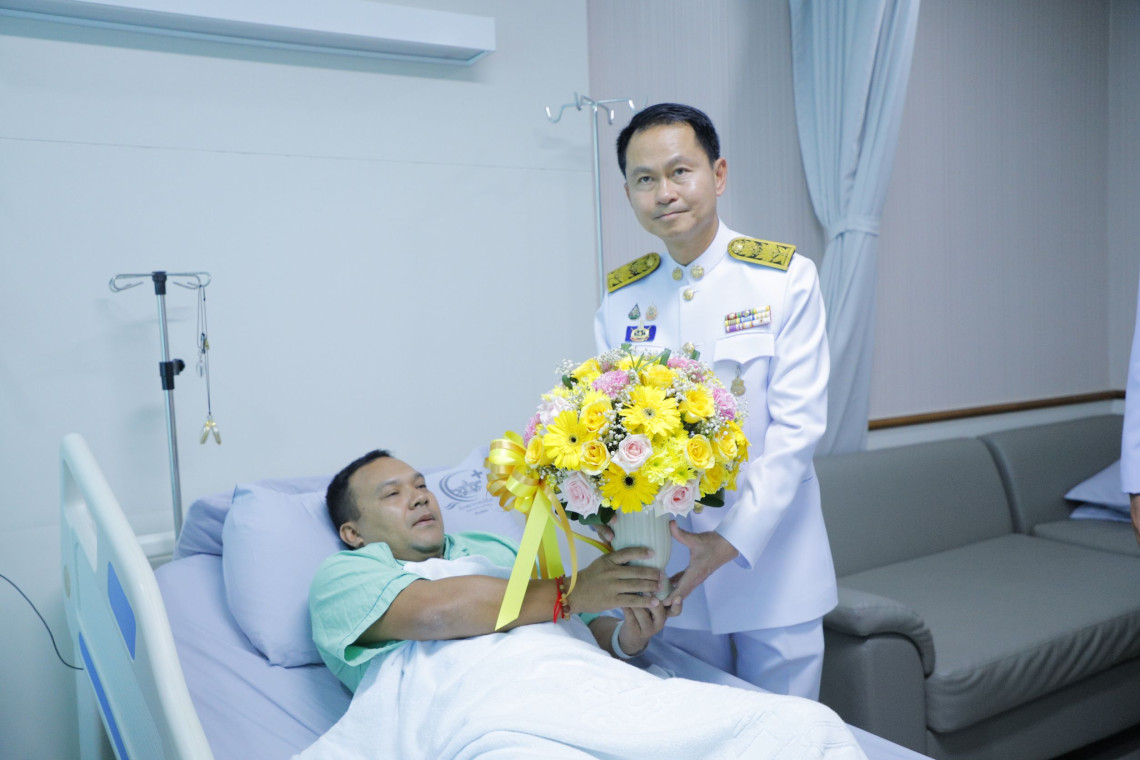 ผู้ว่าฯบุรีรัมย์ เชิญดอกไม้และตะกร้าสิ่งของพระราชทาน มอบกำลังพลบาดเจ็บ จากการสู้รบ