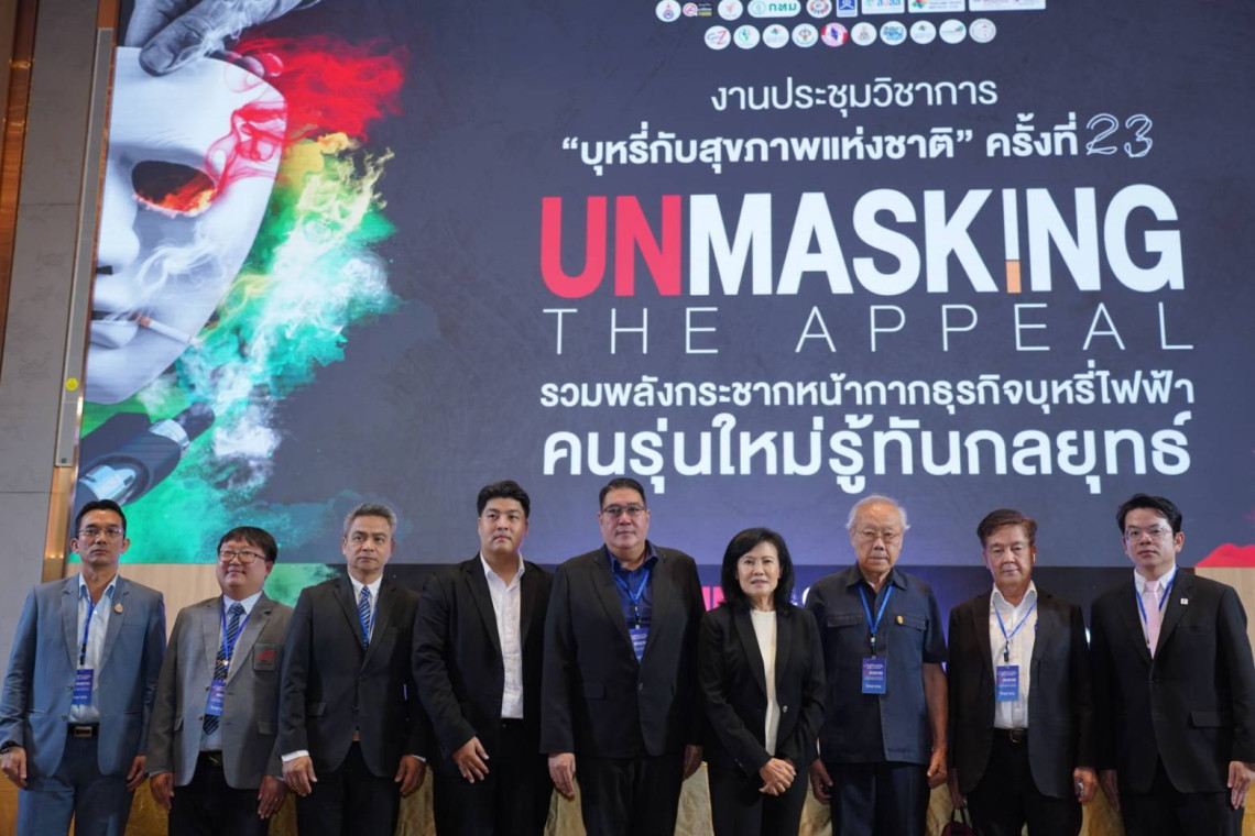 วันที่ 4 ส.ค.2568 ที่รร.ริชมอนด์ นนทบุรี ศูนย์วิจัยและจัดการความรู้เพื่อการควบคุมยาสูบ (ศจย.) คณะแพทยศาสตร์โรงพยาบาลรามาธิบดี มหาวิทยาลัยมหิดล จัดประชุมวิชาการ “บุหรี่กับสุขภาพแห่งชาติ” ครั้งที่ 23 ในโอกาสครบรอบ 20 ปี ศจย. เรื่อง “รวมพลังกระชากหน้ากากธุรกิจบุหรี่ไฟฟ้า : คนรุ่นใหม่รู้เท่าทันกลยุทธ์” ผศ.ดร.นพ.วิชช์ เกษมทรัพย์ ผู้อำนวยการ ศจย.กล่าวว่า สถานการณ์ปัจจุบันที่บุหรี่ไฟฟ้าที่แทรกซึมสู่สังคมไทย โดยเฉพาะกลุ่มเด็กและเยาวชน ซึ่งองค์การอนามัยโลก กำหนดประเด็นการรณรงค์ Unmasking the Appeal กระชากหน้ากากธุรกิจบุหรี่ไฟฟ้า ทำให้ ศจย.ต้องเร่งสร้างความตระหนักรู้เพื่อต่อสู้กับกลยุทธ์อุตสาหกรรมบุหรี่ไฟฟ้า รวมถึงสร้างความร่วมมือกับภาคีเครือข่ายเพื่อปกป้องเด็กและเยาวชนไทย