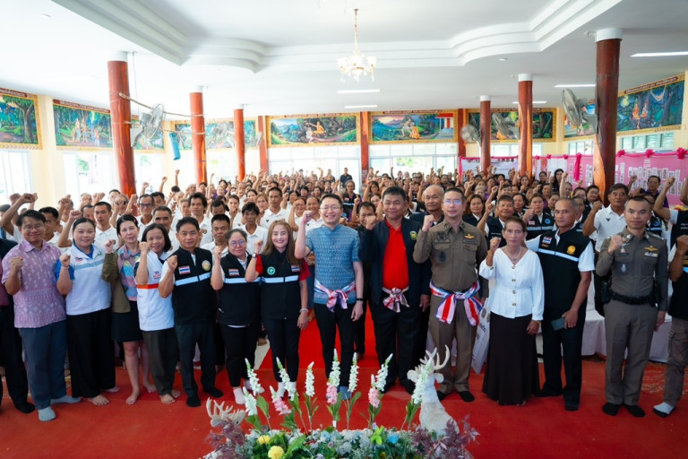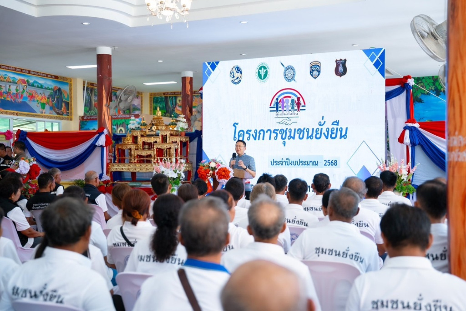 วันที่ 5 ส.ค.68 ณ บ้านยาง หมู่ที่ 9และหมู่ที่ 21 ต.ขามเฒ่าพัฒนา อ.กันทรวิชัย จ.มหาสารคาม นายพลพัฒน์ จรัสเสถียร นายกองค์การบริหารส่วนจังหวัดมหาสารคาม ประธานในพิธี เปิดโครงการตำบลยั่งยืน เพื่อแก้ไขปัญหายาเสพติดแบบครบวงจร ตามยุทธศาสตร์ชาติ ประจำปี 2568 โดยมี รอง ผบก.ภูธรจังหวัด รองนายแพทย์สาธารณสุขจังหวัด ตัวแทนนายอำเภอกันทรวิชัย ผู้กํากับการสถานีตำรวจภูธรกันทรวิชัย กํานันตำบลขามเฒ่า ผญบ. ผู้นําชุมชนทุกระดับ ชุดปฏิบัติการชุมชนยั่งยืน และพี่น้อง ประชาชนทุกคน ตามที่รัฐบาล ได้กําหนดให้ปัญหายาเสพติด เป็นนโยบายเร่งด่วนมอบหมายให้ ทุกหน่วยงาน ที่เกี่ยวข้องเร่งแก้ไขปัญหาให้มีผลการปฏิบัติภายใน 150 วัน นั้น ปัญหายา เสพติด เป็นปัญหาใหญ่ส่งผลกระทบต่อความเดือดร้อน ความทุกข์ยากของประชาชน และ โดยเฉพาะอย่างยิ่งใน ทั้งด้านเศรษฐกิจและสังคม หมู่บ้าน ชุมชนที่มีผู้ติดยาเสพติดอาศัยอยู่ จะมีปัญหามากกว่าทุกระดับ ที่ต้องได้รับการ แก้ไขปัญหาอย่างเร่งด่วน ต้องช่วยเหลือผู้ติดยาเสพติด ให้ได้รับการบำบัดรักษา และปัญหาผู้ค้า ต้องได้รับการลงโทษตามกฎหมาย และเสริมสร้างให้ชุมชนเกิดความเข้มแข็ง ในการ ป้องกันการเข้ามาแพร่ระบาดและชุมชนเกิดความยั่งยืน โดยชุดปฏิบัติการจะช่วยแนะนํา ช่วยบุตรหลานของเรา ที่ติดยาเสพติดให้เข้ารับการรักษา และเข้าสู่กระบวนการชุมชนบำบัด ฟื้นฟู เพื่อนําไปสู่ชุมชนเข้มแข็งแบบยั่งยืน