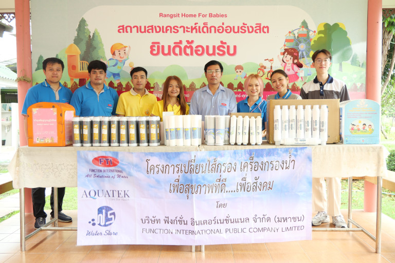 นายวรรณรัตน์ รัตนปัญญา ผู้จัดการฝ่ายการตลาด บริษัท ฟังก์ชั่น อินเตอร์เนชั่นแนล จำกัด (มหาชน) หรือ FTI พร้อมด้วยทีมงาน ร่วมเดินหน้าสานต่อ “โครงการเปลี่ยนไส้กรองเครื่องกรองน้ำ เพื่อสุขภาพที่ดี เพื่อสังคม” โดยมีเป้าหมายเพื่อยกระดับคุณภาพชีวิตของเด็กและเจ้าหน้าที่ในสถานสงเคราะห์ผ่านการดูแลระบบน้ำดื่มอย่างมีประสิทธิภาพ โดยบริษัท ได้ดำเนินการเปลี่ยนไส้กรองและตรวจเช็คเครื่องกรองน้ำอย่างละเอียด เพื่อให้มั่นใจว่าน้ำดื่มที่เด็ก ๆ และบุคลากรใช้บริโภคนั้น สะอาด ปลอดภัย และปราศจากสิ่งปนเปื้อนที่เป็นอันตราย พร้อมทั้งยืนยันความตั้งใจของบริษัท ในการมีส่วนร่วมสร้างสังคมที่มีคุณภาพ ด้วยความห่วงใยในสุขภาพของทุกชีวิต ทั้งนี้ โครงการดังกล่าวถือเป็นอีกหนึ่งพันธกิจในการตอบแทนสังคมของบริษัทที่มุ่งมั่นส่งเสริมสุขภาวะ และยกระดับคุณภาพชีวิตของประชาชนในชุมชนอย่างยั่งยืน ณ สถานสงเคราะห์เด็กอ่อนรังสิต จ.ปทุมธานี