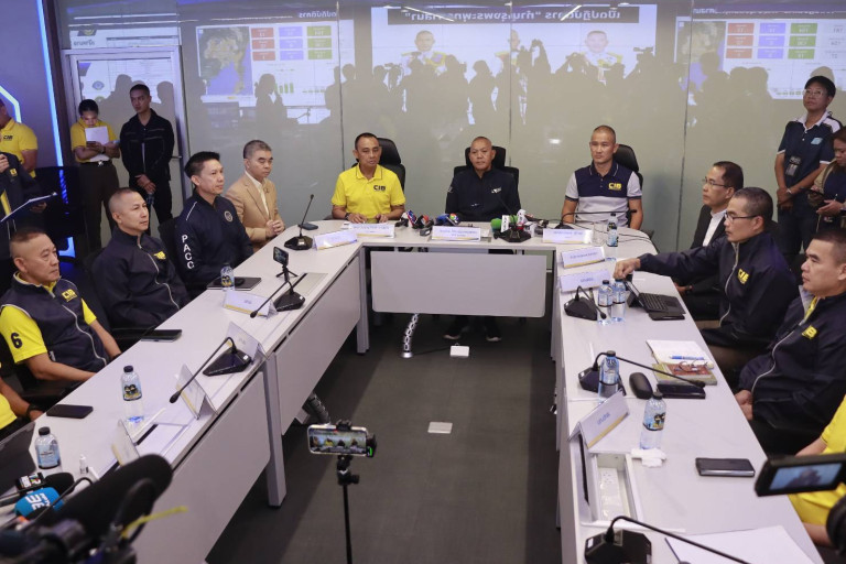 วันที่ 5 ส.ค.68 เวลา 12.00 น.ผู้สื่อข่าวรายงาน ว่า ที่ กองบังคับการปราบปราม (บก.ป.) พล.ต.อ.ไกรบุญ ทรวดทรง รอง ผบ.ตร. พร้อมด้วย พล.ต.ท.จิรภพ ภูริเดช ผบช.ก. พล.ต.ต.จรูญเกียรติ ปานแก้ว รอง ผบช.ก. ร่วมกันแถลงผลปฏิบัติการทำนุบำรุงพระพุทธศาสนา กวาดล้างจับกุมพระทำผิดกฎหมายและพระธรรมวินัยหลังกระจายกำลังเข้าตรวจค้นพื้นที่เป้าหมายหลายจุดทั่วประเทศเมื่อช่วงเช้าที่ผ่านมา