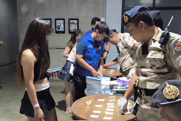 จากการตรวจสอบภายในร้าน พบยาเสพติดประเภทเคตามีนจำนวน 7 ห่อ ซุกซ่อนอยู่ในถังน้ำแข็งและถูกทิ้งไว้บนพื้นร้าน พร้อมอุปกรณ์การเสพหลายรายการ เจ้าหน้าที่จึงเก็บไว้เป็นของกลาง ก่อนดำเนินการตรวจปัสสาวะผู้เข้าใช้บริการ พบผู้เสพปัสสาวะสีม่วงรวม 16 ราย แบ่งเป็นชาย 12 ราย และหญิง 4 ราย นอกจากนี้ยังพบอาวุธมีดจำนวน 4–5 เล่มซุกซ่อนอยู่ภายในร้าน