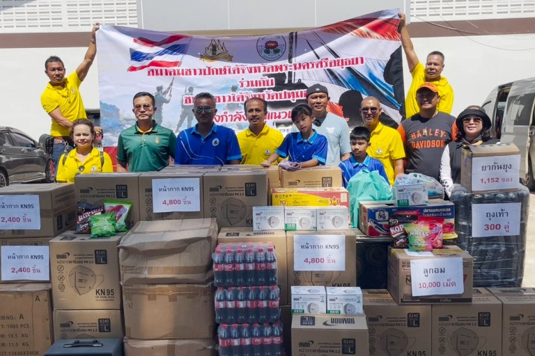 วันที่ 10 สิงหาคม 2568 เวลา 10.00 น.ผู้สื่อข่าวรายงาน ว่า ที่หน้าหอประชุมอำเภอพนมดงรัก จังหวัดสุรินทร์ นายเอกอนันต์ ศรีอินทร์นายอำเภอพนมดงรัก รับมอบสิ่งของมีหน้ากากอนามัย KN 95 ยากันยุง ถุงเท้า ลูกอม และเครื่องอุปโภคบริโภค จากนายศิวัช เพชรมังกรยี่ซุ่นแสง นายกสมาคมชาวปักษ์ใต้ จังหวัดพระนครศรีอยุธยา(สมาคมชาวปักษ์ใต้อยุธยา) และพ.ต.อ.สุนทร รัตนพร ประธานชมรมคนด้ามขวานและเพื่อนปทุมธานี (ชมรมชาวปักษ์ใต้ปทุมธานี) พร้อมคณะได้นำสิ่งของที่จำเป็นมามอบให้ทหารกล้าที่ชายแดนอำเภอพนมดงรัก เพื่อเติมเต็มในสิ่งที่จำเป็นและขาดเหลือในยามที่ชายแดนไทย-กัมพูชามีความไม่สงบเรียบร้อยมีการปะทะกันเกิดขึ้นจากทั้งสองฝ่าย โดยเฉพาะหน้ากากอนามัยป้องกันกลิ่น ที่ช่วงนี้พบว่ามีกลิ่นเน่าเหม็นถูกลมพัดเข้ามาส่งกลิ่นอย่างรุนแรง