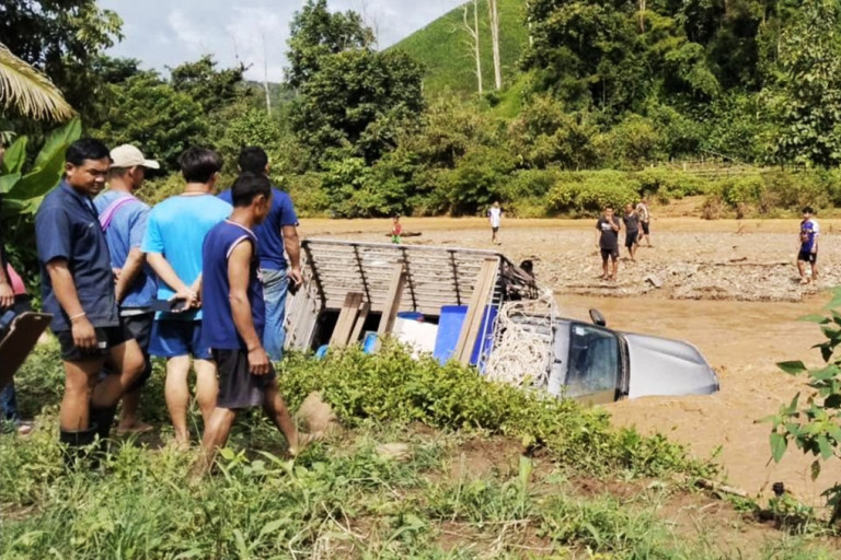 นายอำเภอแม่สะเรียง แจ้งเตือนเฝ้าระวังน้ำป่าไหลหลาก หลังรถยนต์วิ่งข้ามลำห้วยแม่แงะ ท่าแม่เจ ต.เสาหิน ถูกน้ำป่าพัด เดชะบุญชาวบ้านช่วยกันทัน