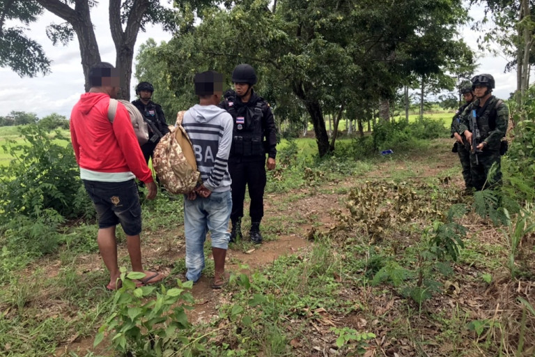 ต่อมาในวันเดียวกัน เวลา 11.30 น. เจ้าหน้าที่ชุดเดิมได้ตรวจพบบุคคลต้องสงสัยอีก 2 ราย เดินเท้าอยู่ในไร่อ้อยในพื้นที่บ้านกุดหิน ตำบลตลองน้ำใส อำเภออรัญประเทศ จะมุ่งหน้าไปยังฝั่งกัมพูชา เมื่อเข้าตรวจสอบพบว่าเป็นชายไทย คือ นายสิทธิพร อายุ 35 ปี ชาวจังหวัดกาญจนบุรี และ นายสุวัฒน์ อายุ 44 ปี ชาวจังหวัดนครปฐม จากการสอบสวน ทั้งสองให้การว่าเป็นลูกพี่ลูกน้องกัน และถูกชักชวนจากนายหน้าชื่อ "มาร์ค" ให้ไปทำงานที่ประเทศกัมพูชา โดยก่อนเดินทาง นายมาร์คได้ให้ทั้งคู่เปิดบัญชีธนาคารคนละ 1 บัญชี และเซ็นเอกสารจัดตั้งบริษัท ก่อนที่ทั้งคู่จะเดินทางจากจังหวัดนครปฐมมายังอำเภออรัญประเทศ เมื่อถึงที่สถานีขนส่งอรัญประเทศ มีชายไทยมารับพวกเขาและพามาส่งบริเวณชายแดน พร้อมบอกให้เดินเท้าเข้าไปในไร่อ้อยเพื่อรอผู้นำพาชาวกัมพูชามารับ แต่ในระหว่างที่กำลังเดินอยู่นั้น ก็มาถูกเจ้าหน้าที่ที่ลาดตระเวนอยู่ตรวจพบและจับกุมตัวได้พร้อมของกลางเป็นเอกสารการจดทะเบียนบริษัท ซึ่งเจ้าหน้าที่จะนำตัวไปขยายผลทางคดี ที่ สภ.คลองน้ำใสต่อไป
